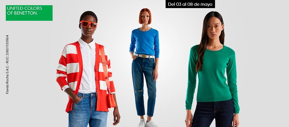 Para una mamá amante de la moda, United Colors of Benetton tiene un estilo que combina el color, la calidad y la moda. Con el Club, aprovecha el 40% de dscto. en accesorios y 30% de dscto. en el resto de la tienda.