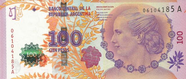 En Argentina, en el 2012 tras el aniversario número 60 de la muerte de la ex primera dama Eva Perón, la entonces presidenta argentina Christina Fernández de Kirchner anunció el nuevo diseño del billete de 100 pesos del país, con la famosa figura. Reconociendo que Perón era una “mujer del pueblo que tuvo la gran suerte de conocer a un hombre y a un pueblo”.