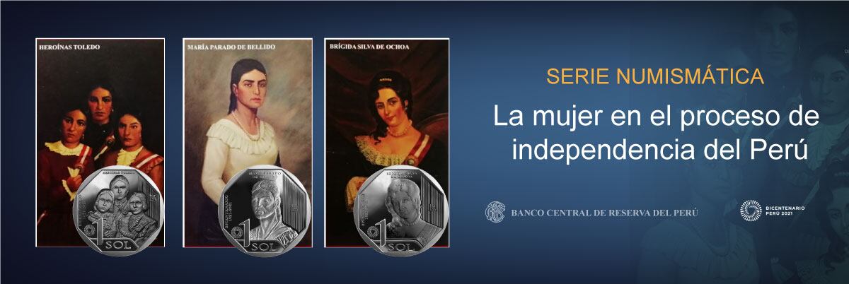 Por otro lado, el Banco Central de Reserva comenzó a circular, a partir del 30 de diciembre del 2020, una colección llamada “Las Mujeres en el Proceso de Independencia del Perú”. Una serie numismática del Sol peruano que consta de tres monedas alusivas a las heroínas Toledo, Brígida Silva de Ochoa y María Parado de Bellido, las cuales logran rendir tributo a la imagen e historia de mujeres patriotas peruanas que lucharon en diversas formas e incluso entregaron su vida para lograr la independencia del Perú.