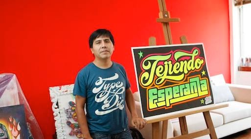 ¿Cuándo empezó a experimentar con otras técnicas? Es inevitable que te hagas conocido por algo puntual. Soy un rotulador de letras y busco distintos soportes para demostrarlo, pero cuando volví de Chile, quise explorar el arte urbano, ampliar formatos y usar materiales como el spray y el látex.