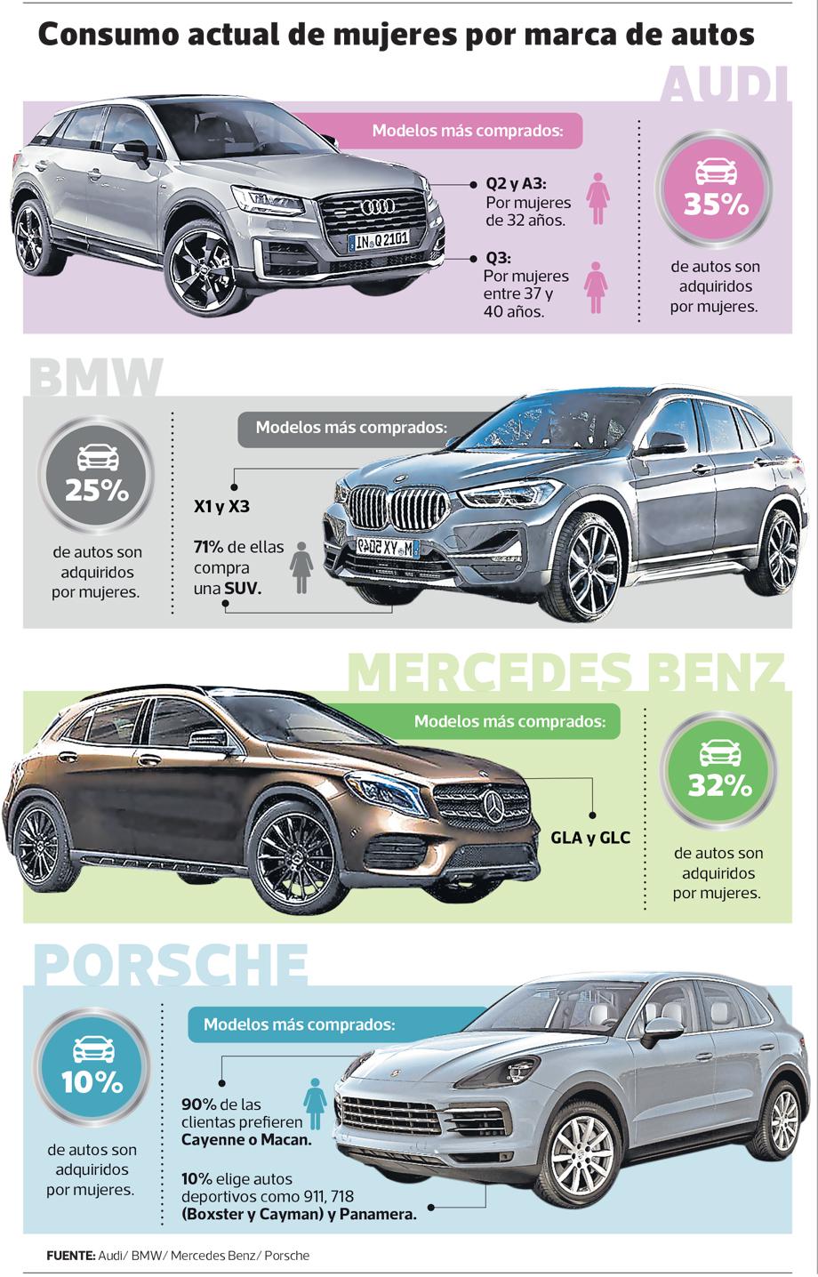 Por otra parte, según Sandra Zúñiga, customer experience manager de BMW, ellas prefieren las experiencias premium y acabados de lujo. Buscan el asistente de parqueo, así como abrir la maletera sin usar la llave.