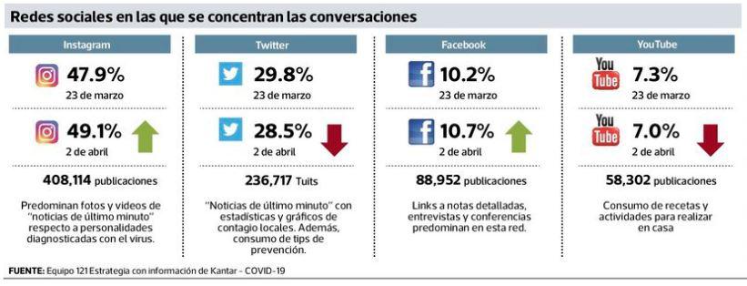 Respecto a marzo del 2019, Chile aumentó sus publicaciones en Facebook en casi 53%, Brasil le sigue con un crecimiento de casi 37%. En tanto, las publicaciones de peruanos crecieron 2%.