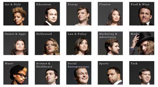 Un total de 450 personajes menores de 30 años fueron seleccionados por la revista Forbes como los jóvenes más influyentes del año. Para cada una de las 15 categorías, se eligieron a los 30 más destacados.