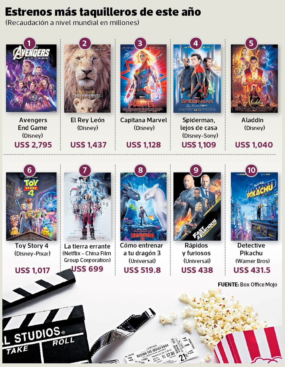 Por si fuera poco, seis de los nueve filmes de la empresa estrenados este año, a la fecha superaron los US$ 1,000 millones en recaudación: “El rey león”, “Capitana Marvel”, “Aladdin”, “Spiderman” (distribuida por Sony) y “Toy Story 4”.