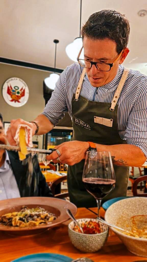 Osteria Burgos se presenta como un restaurante de barrio, pero es más que eso. Cumple con la promesa de ofrecer comida confortable y fácil de entender –pizzas, arroces, guisos y demás gollerías para engreír al corazón–, pero ejecutada con mayor nivel del que uno espera en un establecimiento vecinal. Influye mucho que la cocina la lidere Rafael Piqueras, uno de los cocineros peruanos con mayor trayectoria. Sin contar consultorías y mudanzas internacionales, en Lima regentó Insumo en el AC by Marriott, antes Maras, en el hotel Westin, Fusión, también en San Isidro, y San Felice, el restaurante en el que empezó a desarrollar su propia voz. Por lo que uno come en Burgos, uno tiene la sensación de que después de su silencio en la escena local ha querido que su retorno sea discreto, sabroso, seguro y sencillo. En definitiva, un menú confiable conformado solo por apuestas seguras que gustan a todos fácilmente y que suponen mínimo riesgo. Algo coherente con los tiempos recesivos que empiezan a imponerse, en los que los comensales salen menos, gastan menos y buscan maximizar su satisfacción con platos que le hablen más al corazón que a la cabeza.