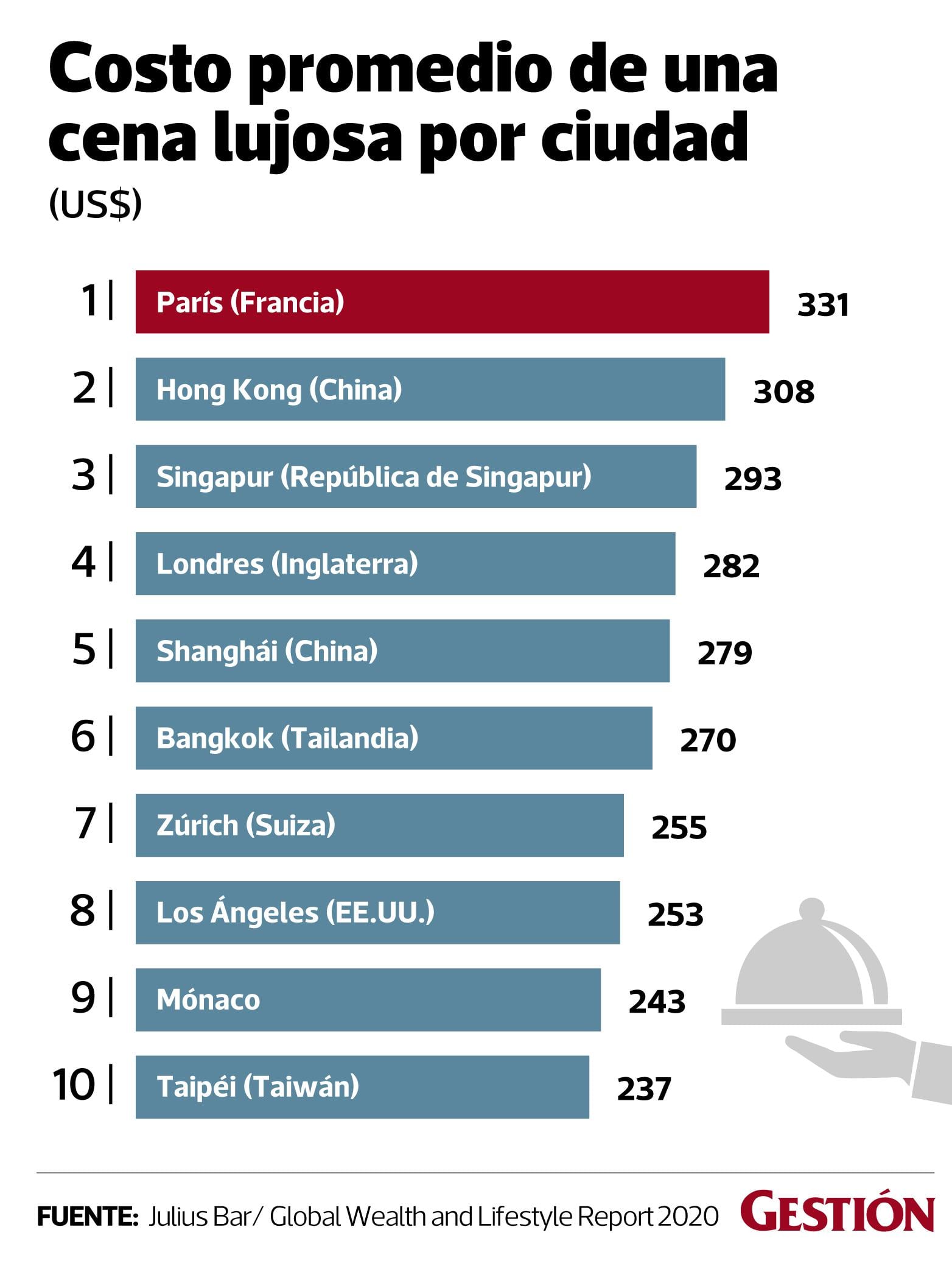 Paris, Hong Kong y Singapur cobran más por cenar. A nivel regional, Asia es el más caro lugar para disfrutar de una buena cena, seguido de Europa, lugares en los cuales es significativamente más caro que comer en América.