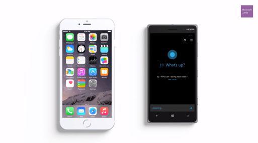 En los spots, Microsoft compara su propia asistente de voz, Cortana, con la de la competencia, Siri de Apple. Mientras la primera presume en el nuevo Lumia 830 de una voz cristalina y casi humana, Siri suena a su lado inevitablemente "robótica".