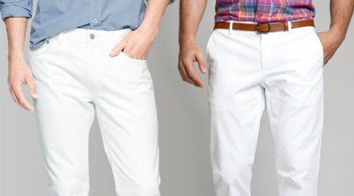 El blanco simboliza la pureza, pero nadie lo llamaría recatado cuando es el color de unos pantalones. En cambio, evoca la extravagante jactancia de los pantalones que se usan junto al mar, tal vez con un canotier. O el garbo de Nueva Inglaterra de John F. Kennedy en un velero, tal vez con audaces calcetines azules o un suéter de verano estilo marinero. Llevados con una chaqueta de tipo militar, los pantalones blancos pueden darle el glamour subtropical de un personaje de Graham Greene.