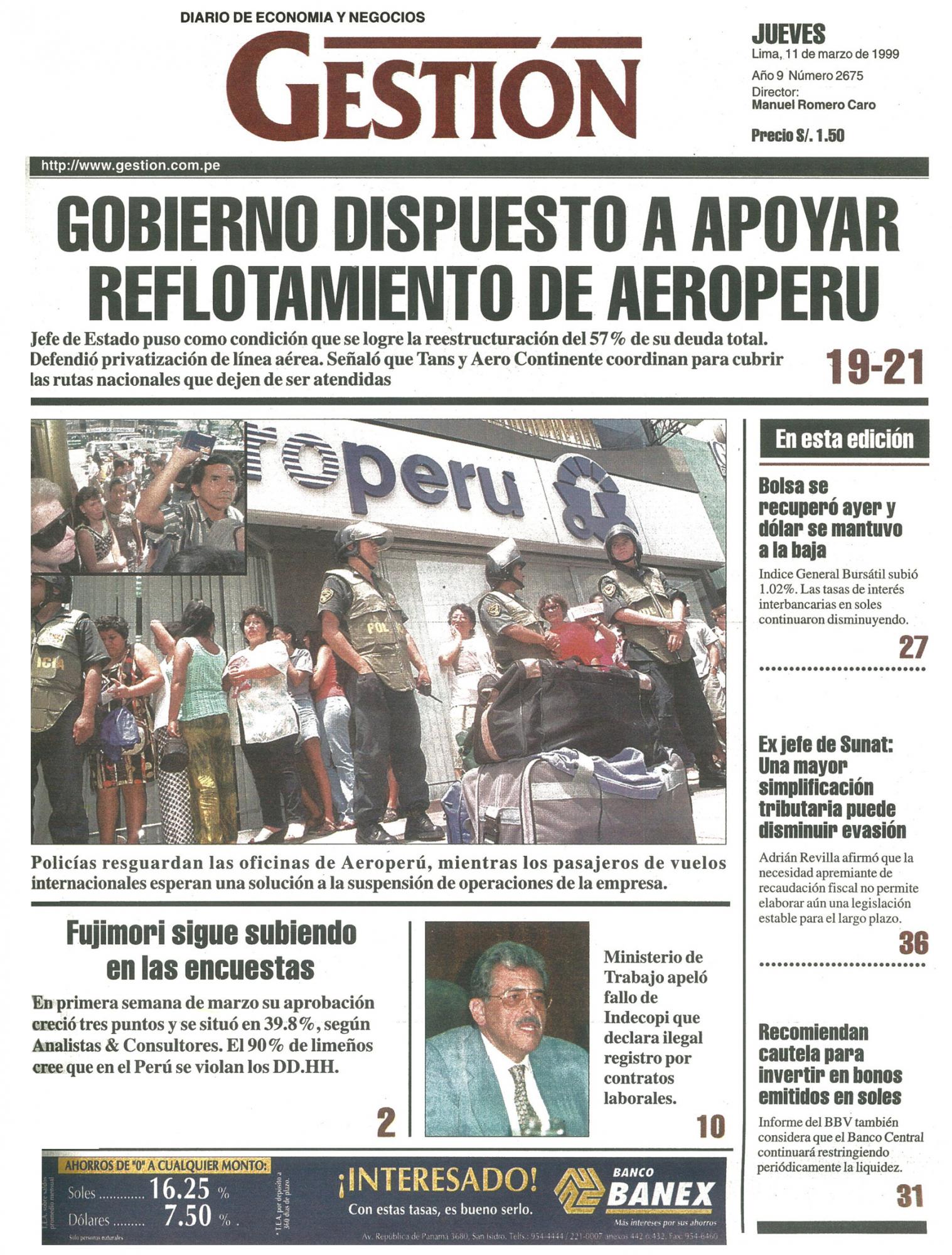EN PRÓXIMOS DÍAS AEROPERÚ PRESENTARÁ DECLARATORIA DE INSOLVENCIA ANTE INDECOPI