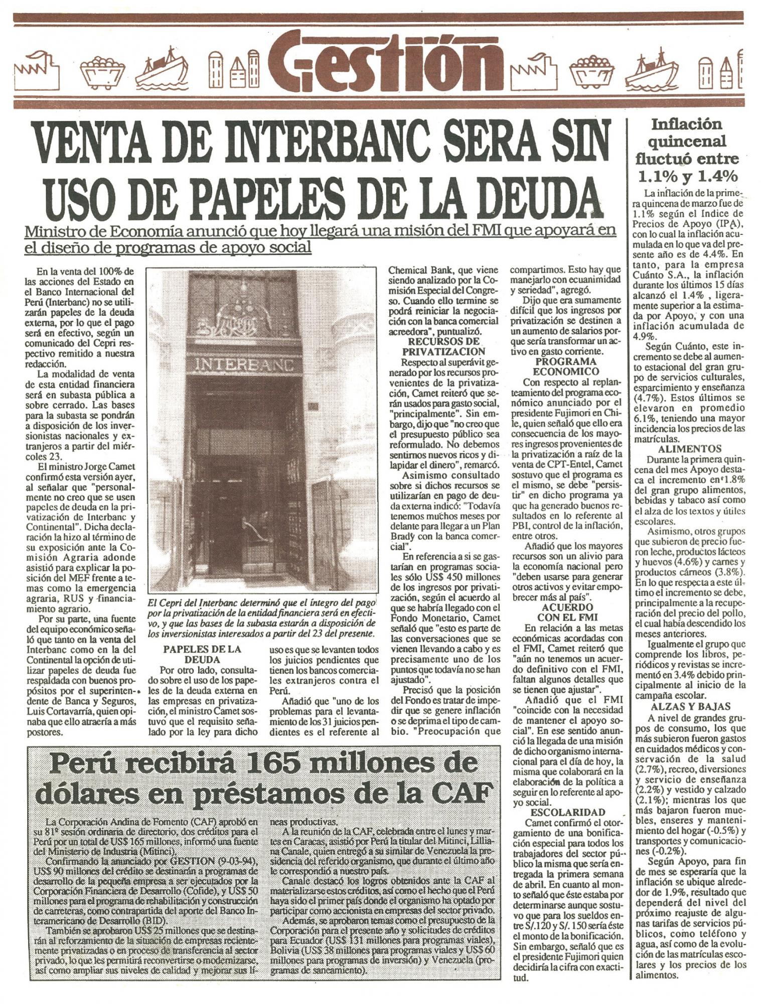 PRIVATIZARAN INTERBANC SIN UTILIZAR PAPELES DE DEUDA