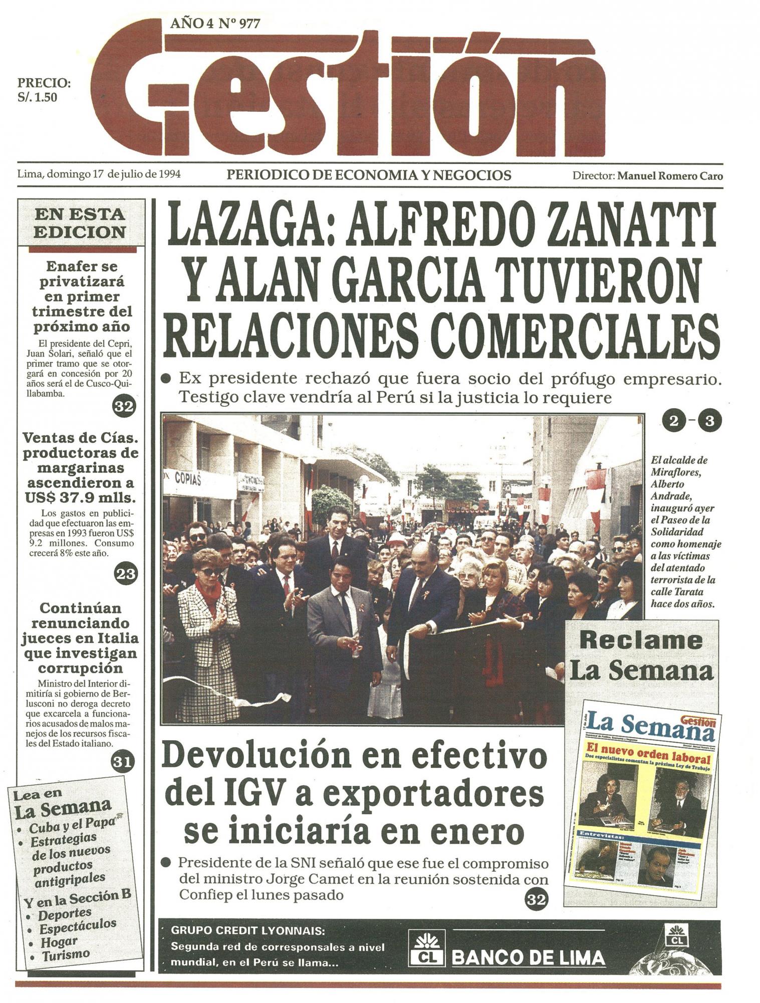 LAZAGA: ALFREDO ZANATTI Y ALAN GARCIA TUVIERON RELACIONES COMERCIALES
