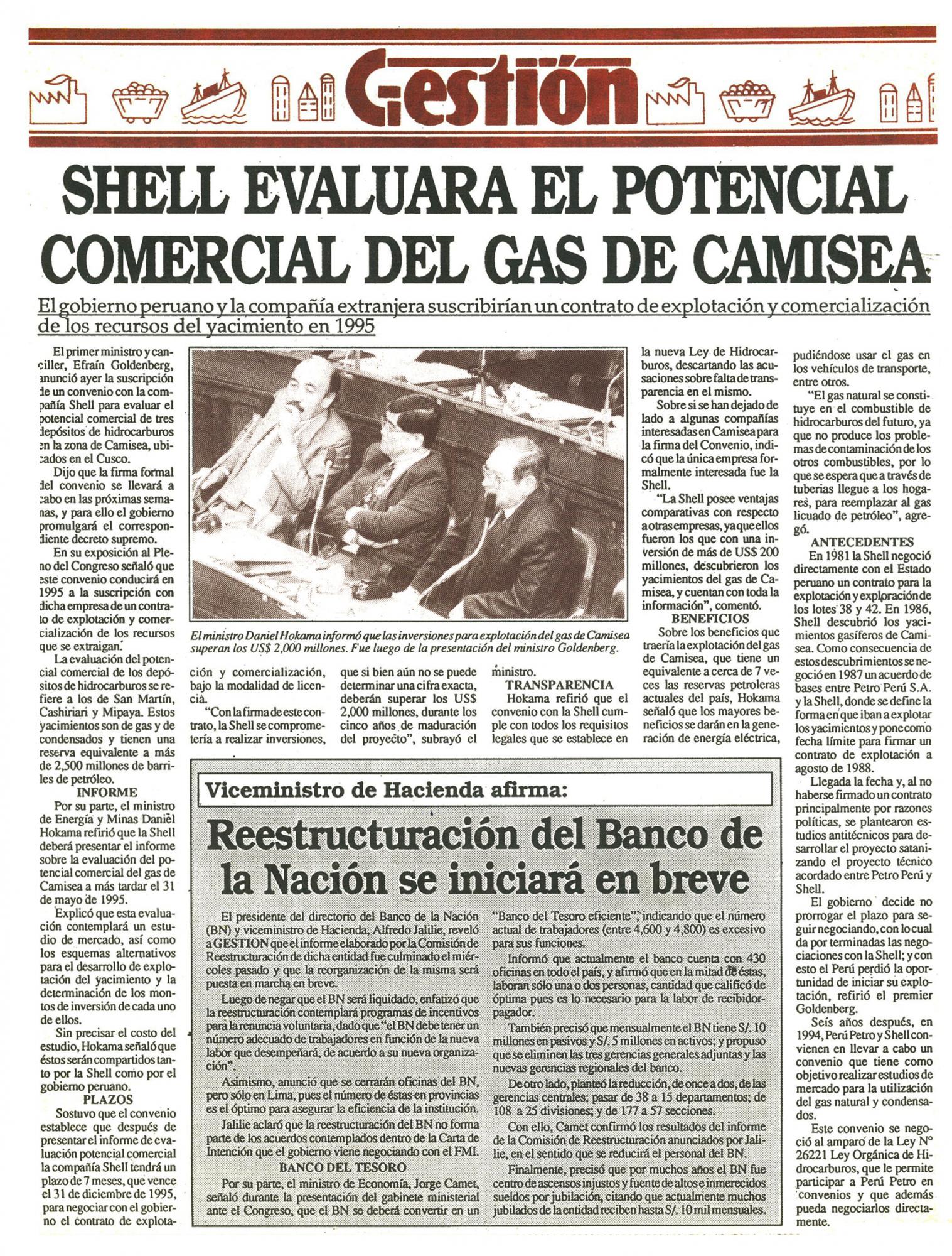 El gobierno peruano y la compañía extranjera suscribirían un contrato de explotación y comercialización de-los recursos del yacimiento en 1995