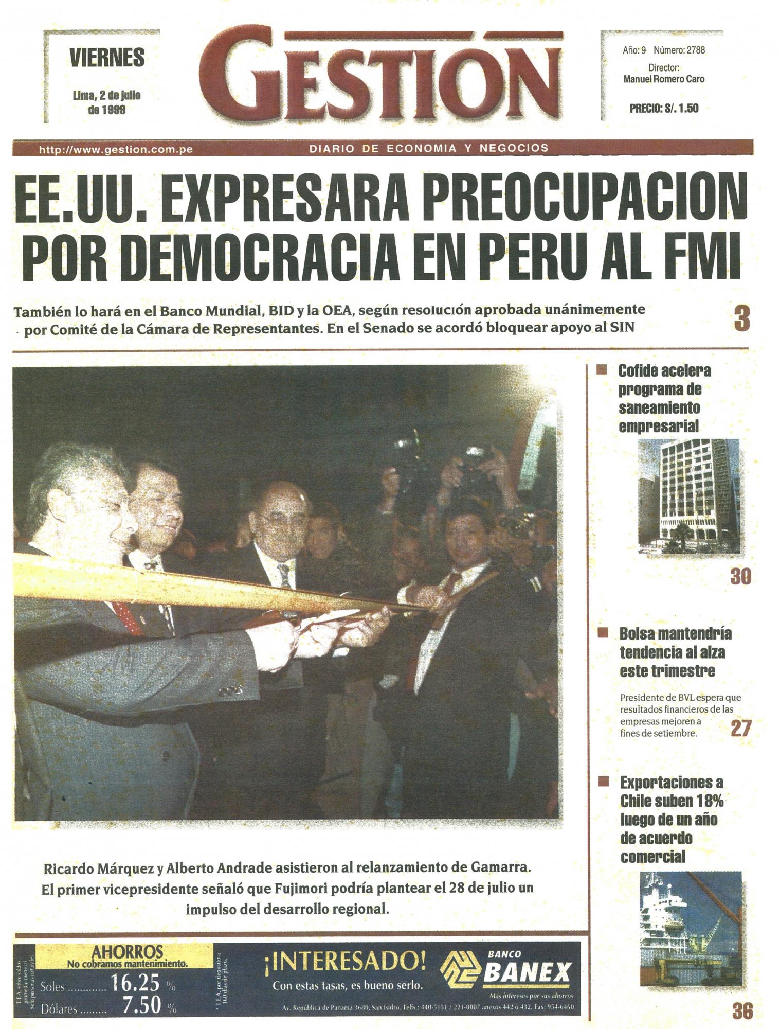 EE.UU. EXPRESARA PREOCUPACION POR DEMOCRACIA EN PERU AL FMI