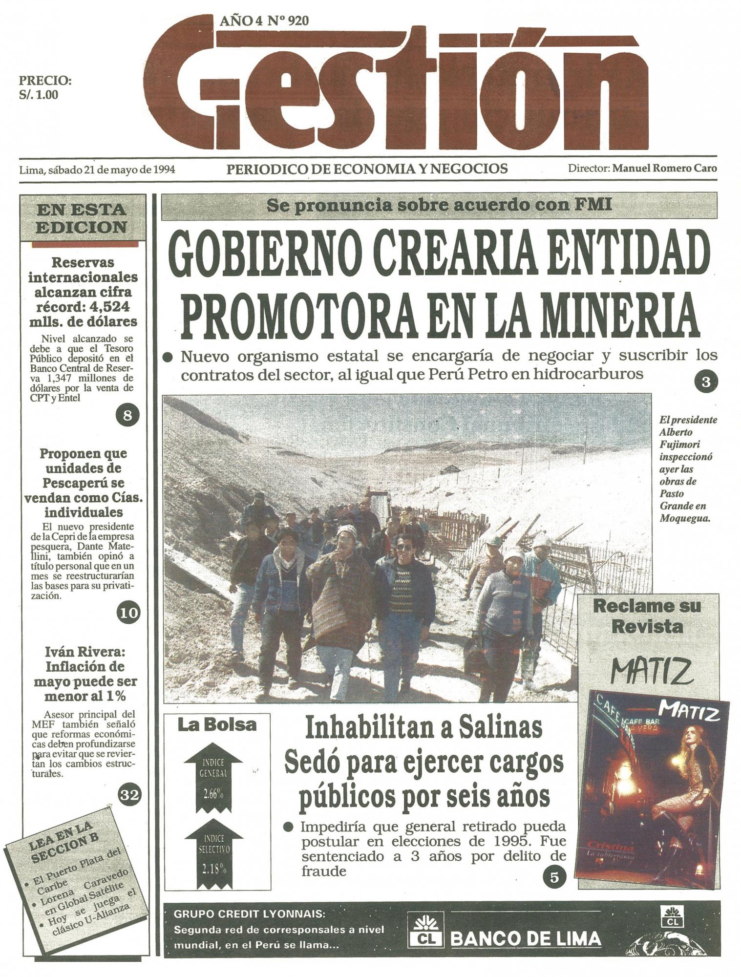 Se pronuncia sobre acuerdo con FMI: GOBIERNO CREARIA ENTIDAD PROMOTORA EN LA MINERIA