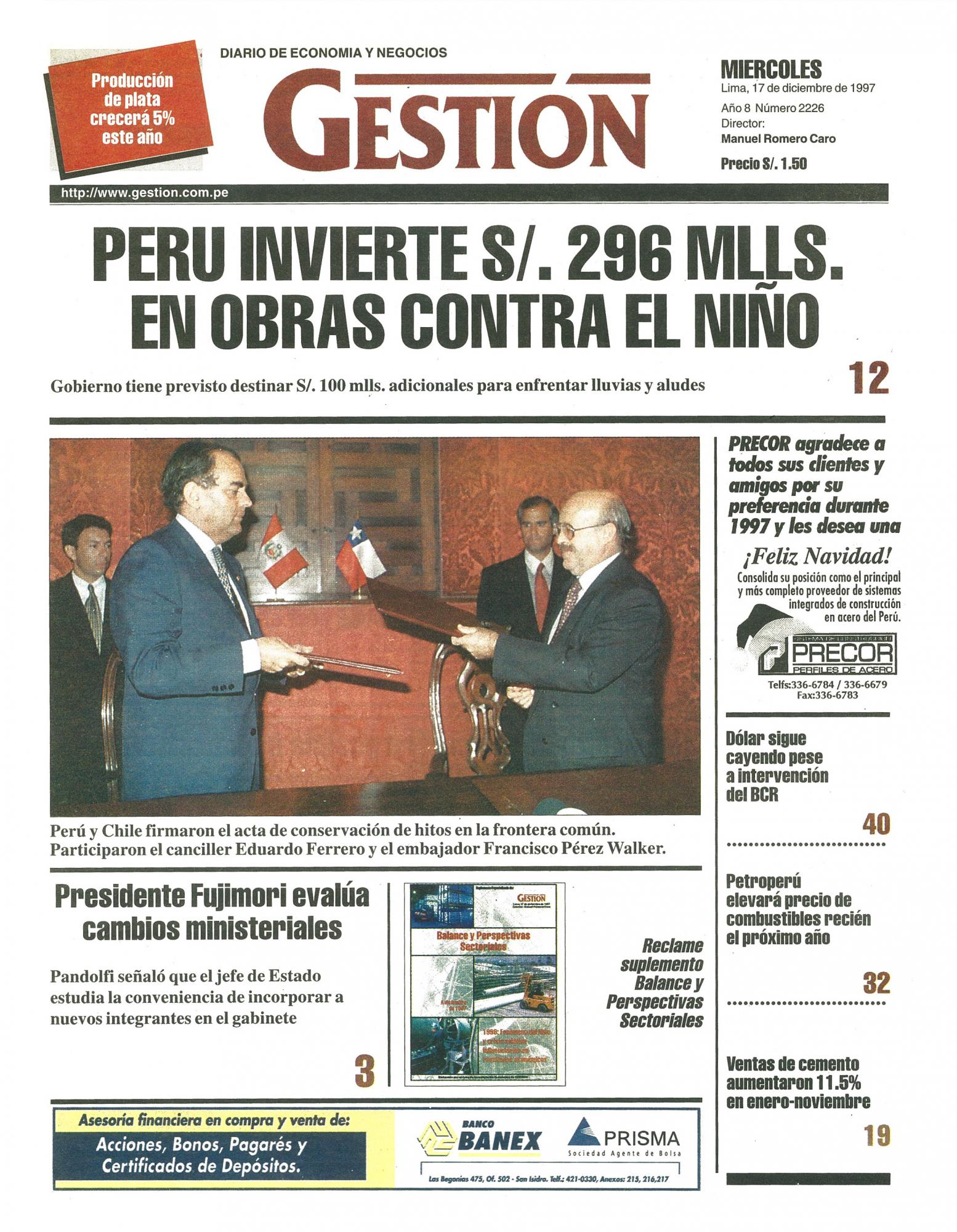 PERÚ INVIERTE S/ 296 MLLS. EN OBRAS CONTRA EL NIÑO
