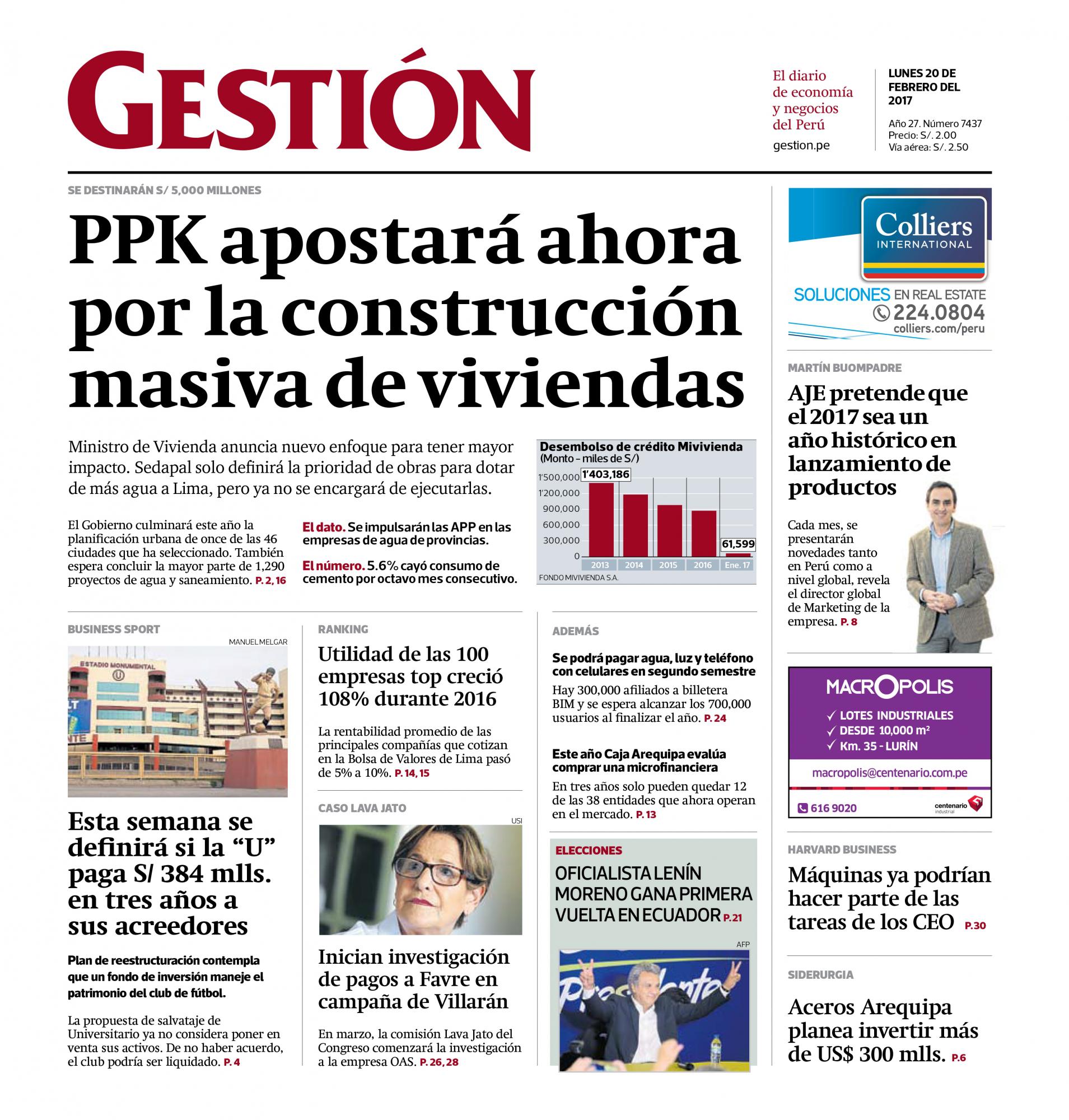 SE DESTINARÁN S/ 5,000 MILLONES Ministro de Vivienda anuncia nuevo enfoque para tener mayor impacto. Sedapal solo definirá la prioridad de obras para dotar de más agua a Lima, pero ya no se encargará de ejecutarlas. El Gobierno culminará este año la planificación urbana de once de las 46 ciudades que ha seleccionado. También espera concluir la mayor parte de 1,290 proyectos de agua y saneamiento.