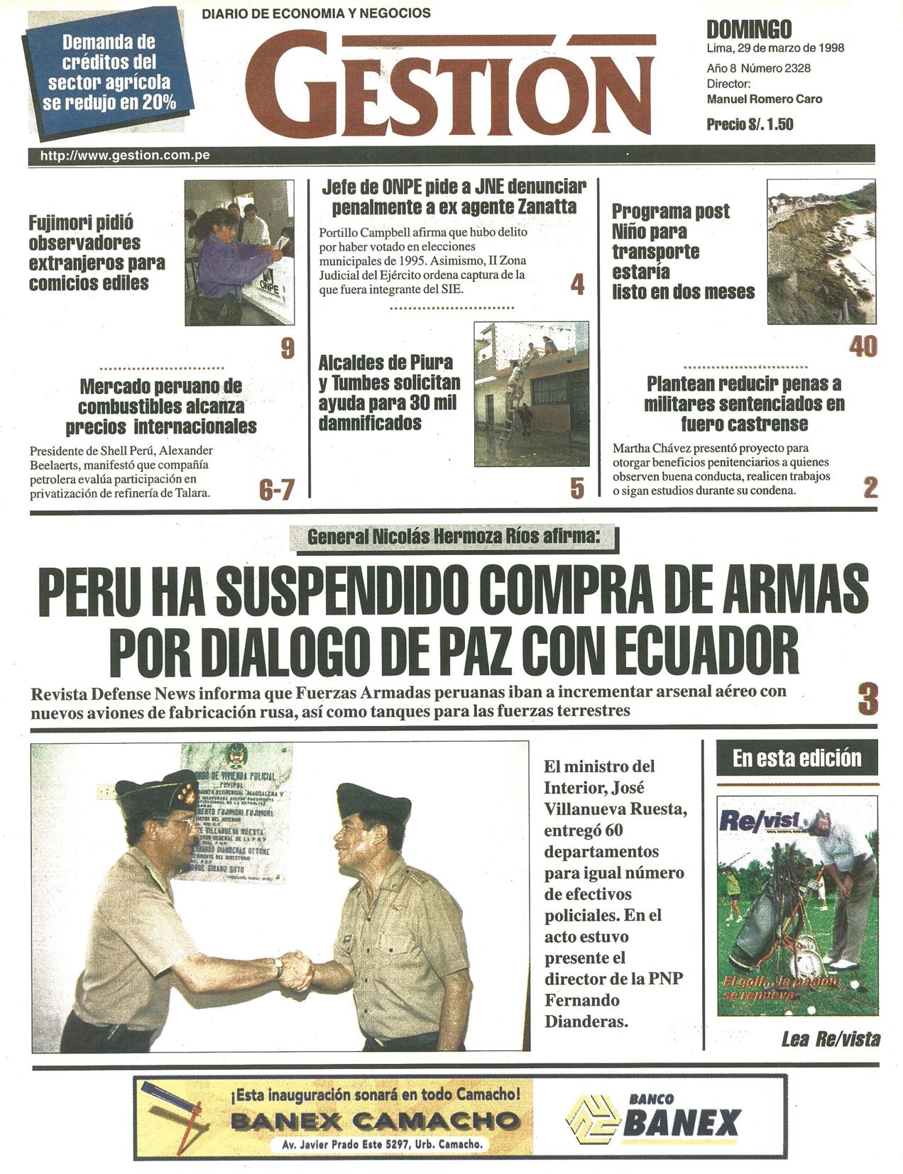 General Nicolás Hermoza Ríos afirma: PERU HA SUSPENDIDO COMPRA DE ARMAS POR DIALOGO DE PAZ CON ECUADOR
