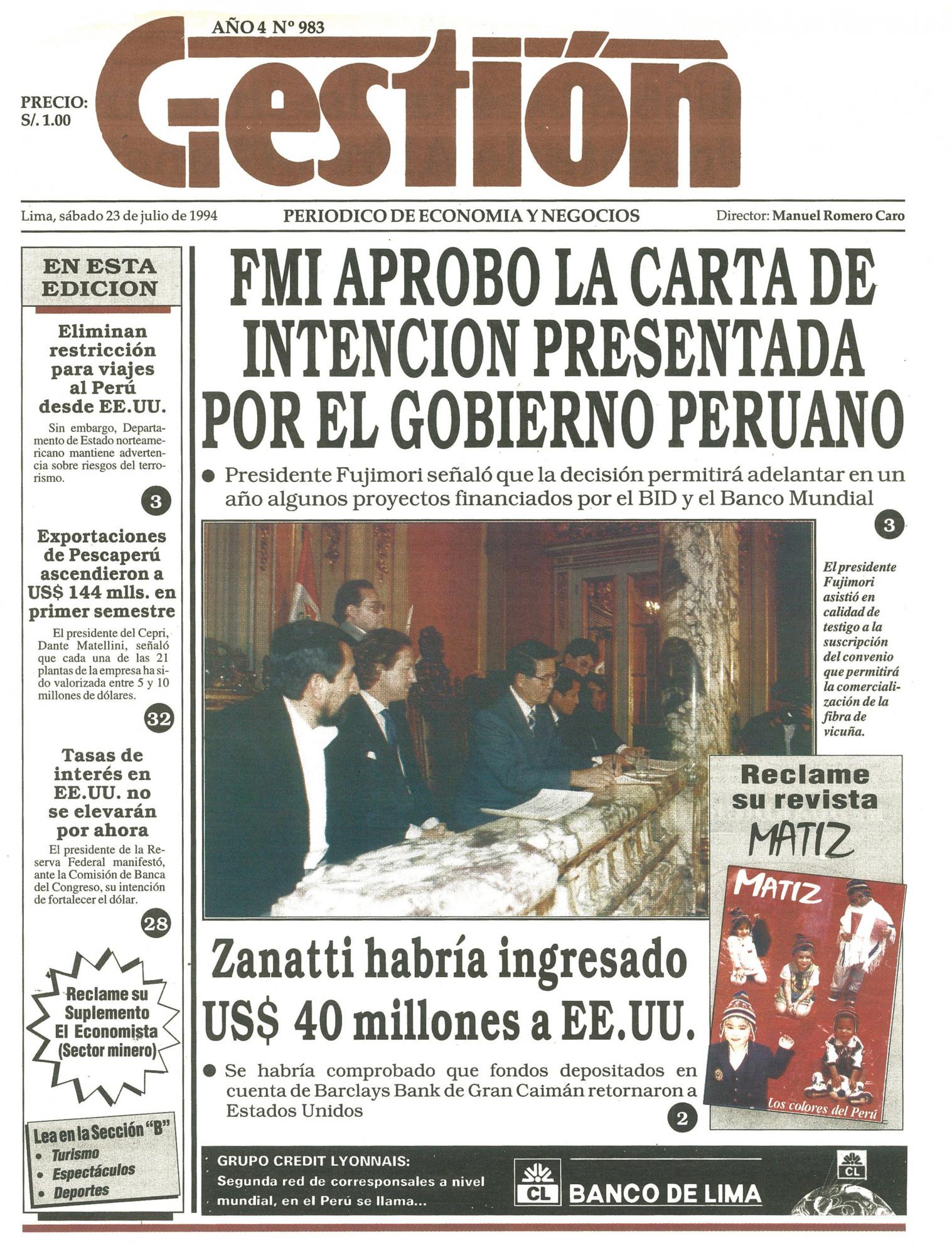 FMI APROBO LA CARTA DE INTENCION PRESENTADA POR EL GOBIERNO PERUANO