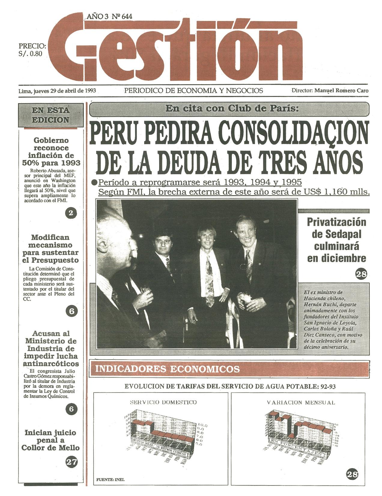 Período a reprogramarse será 1993, 1994 y 1995.