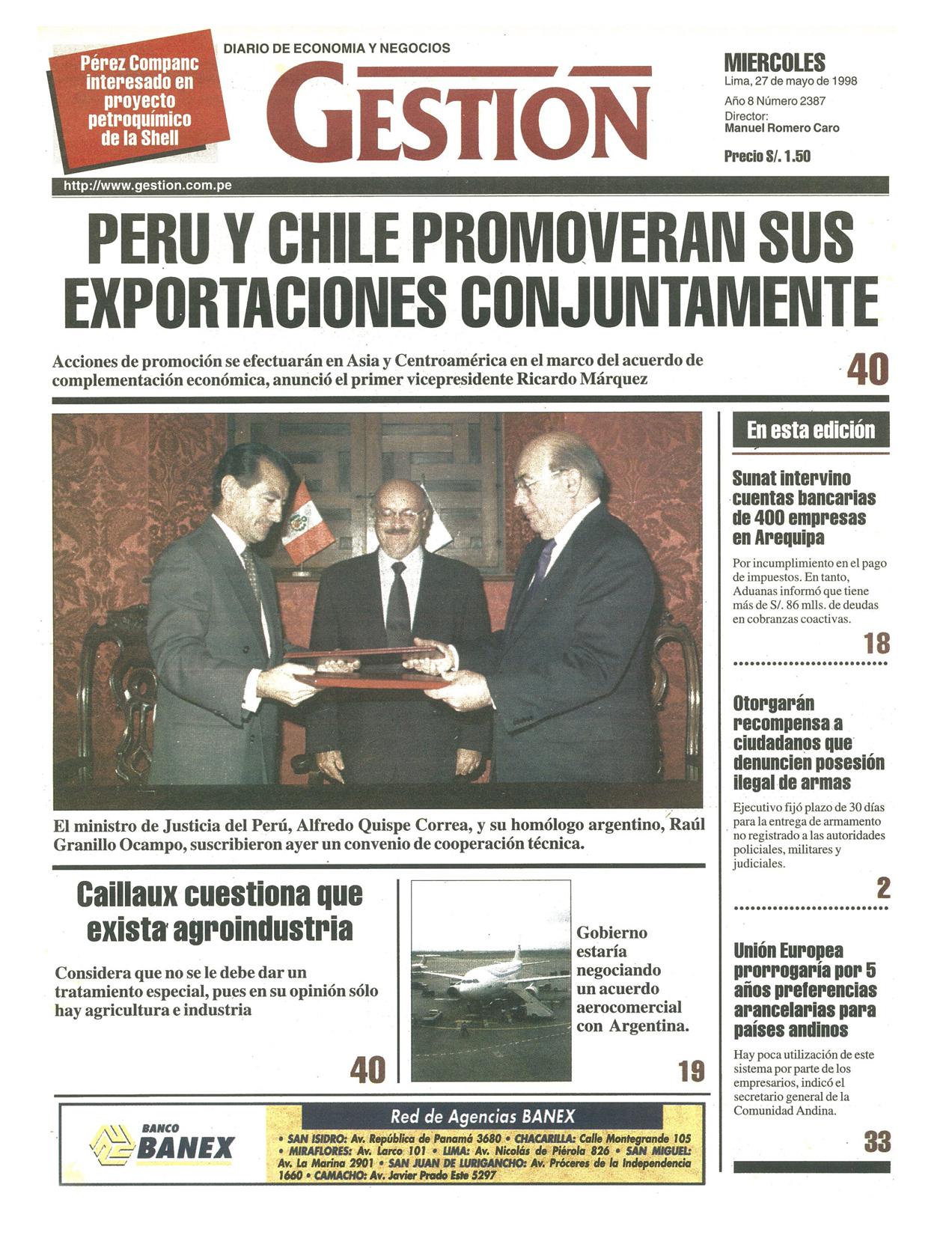 PERU Y CHILE PROMOVERAN SUS EXPORTACIONES CONJUNTAMENTE