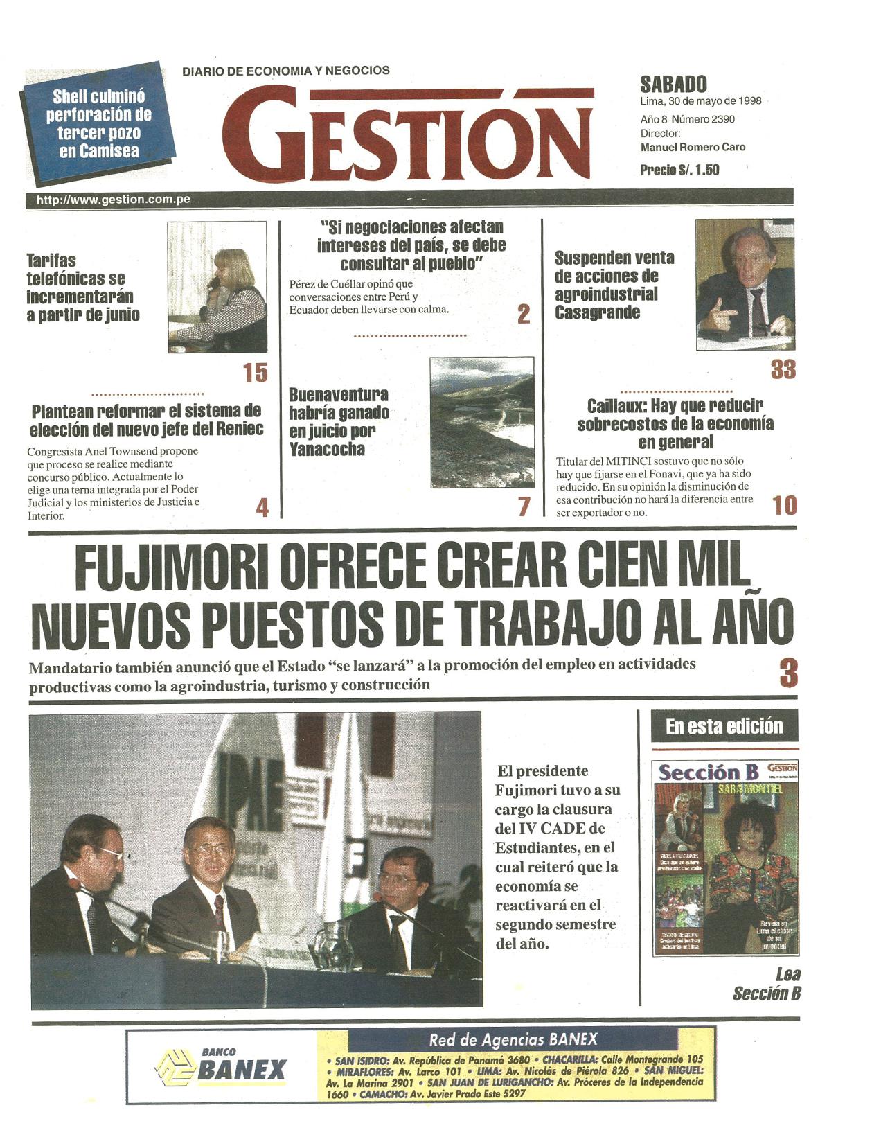 FUJIMORI OFRECE CREAR CIEN MIL NUEVOS PUESTOS DE TRABAJO AL AÑO