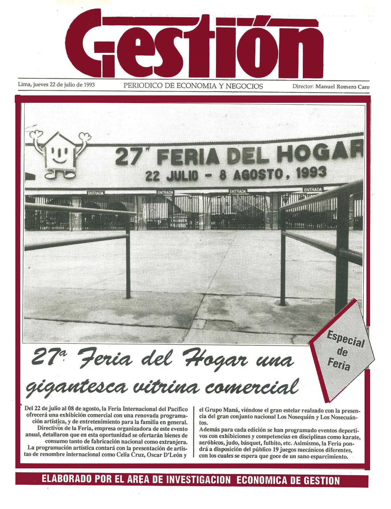 Del 22 de julio al 08 de agosto, la Feria Internacional del Pacífico ofrecerá una exhibición comercial con una renovada programación artística y de entretenimiento para la familia en general. Directivos de la Feria, empresa organizadora de este evento anual, detallaron que en esta oportunidad se ofertarán bienes de consumo tanto de fabricación nacional como extranjera. La programación artística contará con la presentación de artistas de renombre internacional como Celia Cruz, Oscar D´León y el Grupo Maná, viéndose el gran estelar realzado con la presencia del gran conjunto nacional Los Nosequien y Los Nosecuántos.