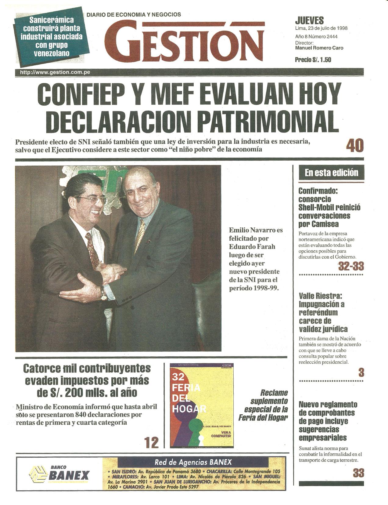CONFIEP Y MEF EVALUAN HOY DECLARACION PATRIMONIAL
