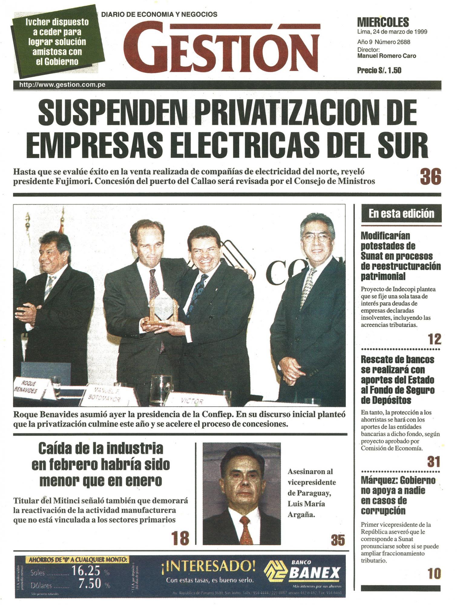 Hasta que se evalúe éxito en la venta realizada de compañías de electricidad del norte, reveló presidente Fujimori. Concesión del puerto del Callao será revisada por el Consejo de Ministros