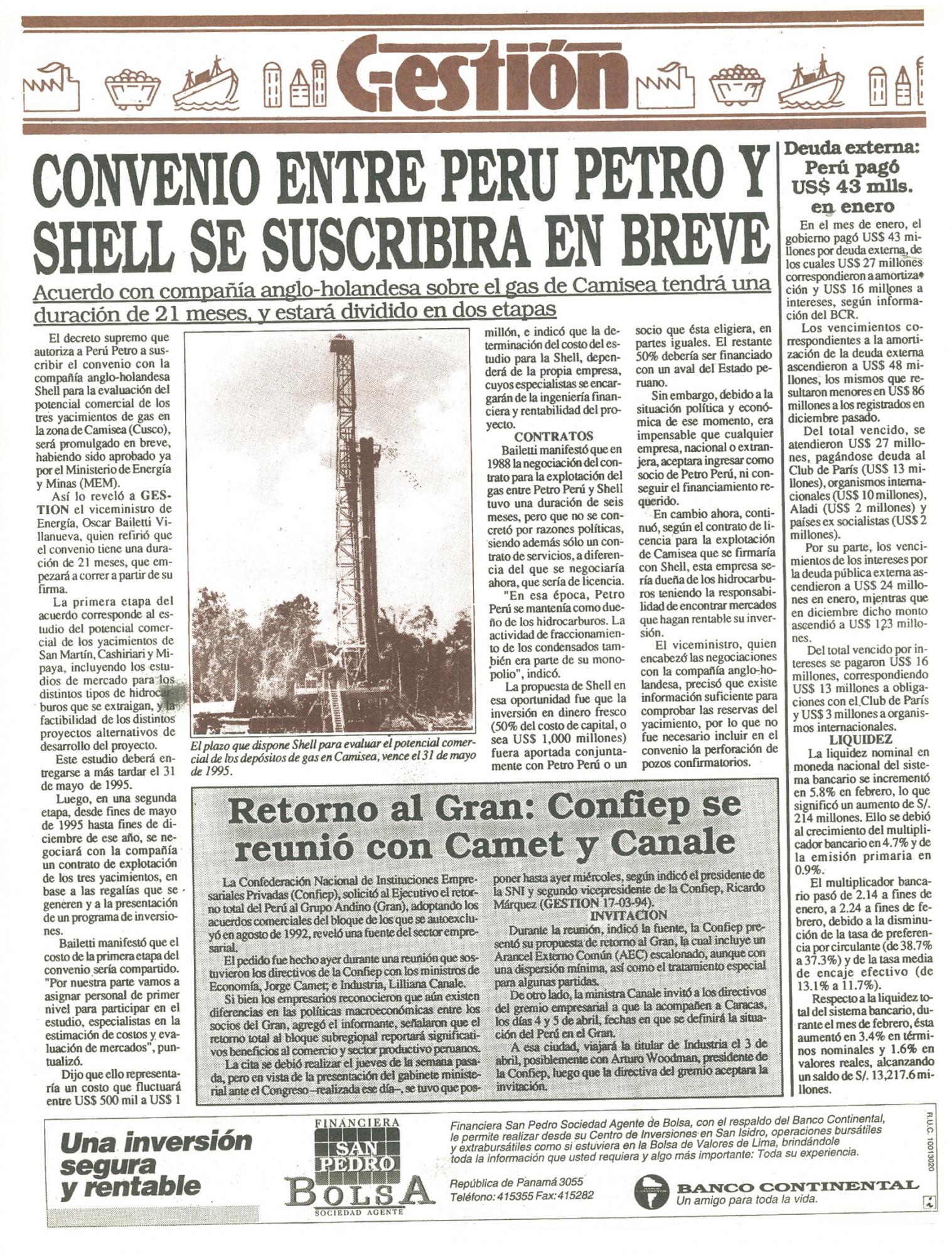 CONVENIO ENTRE PERU PETRO Y SHELL SE SUSCRIBIRA EN BREVE
