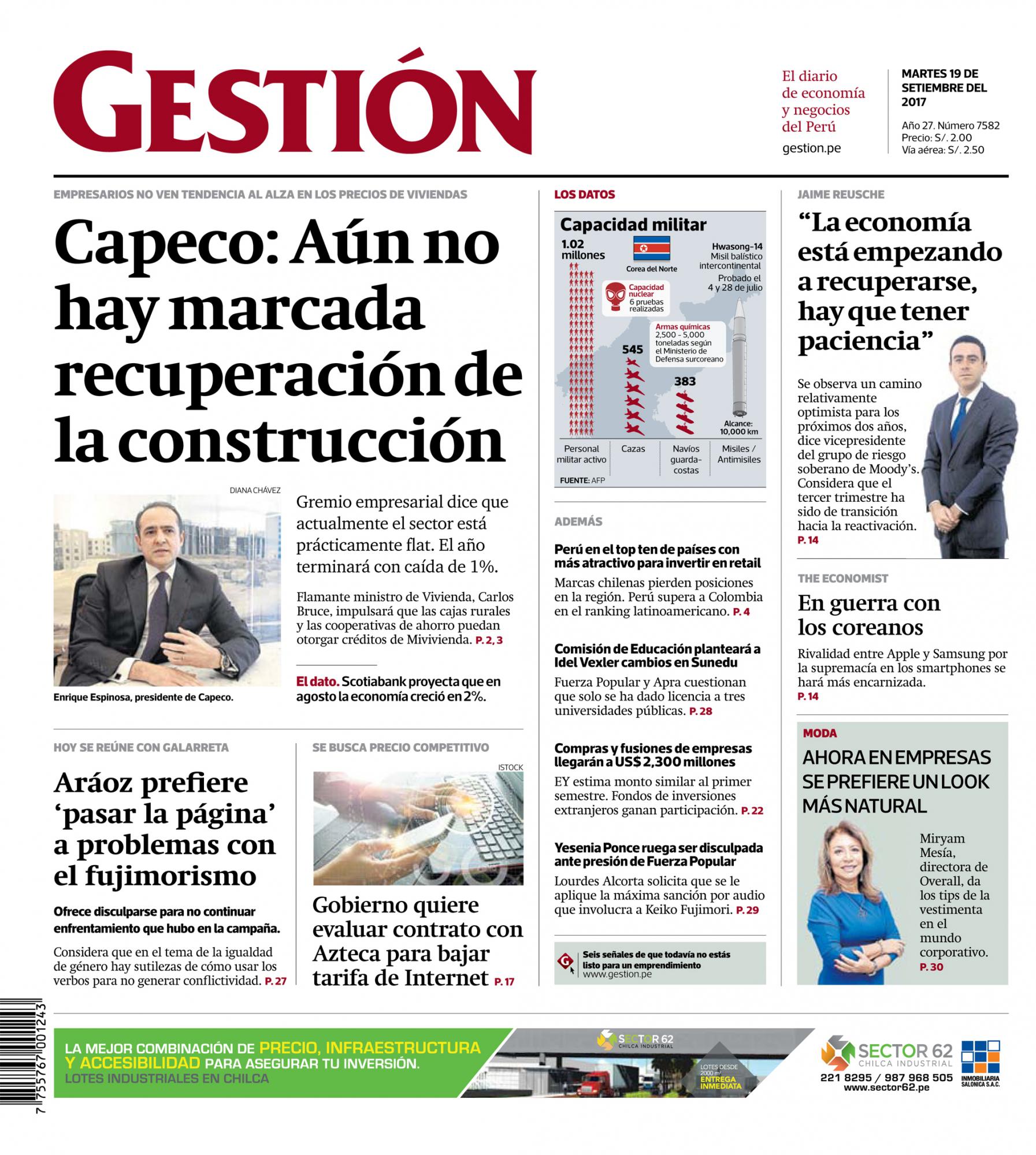 Gremio empresarial dice que actualmente el sector está prácticamente flat. El año terminará con caída de 1%. Flamante ministro de Vivienda, Carlos Bruce, impulsará que las cajas rurales y las cooperativas de ahorro puedan otorgar créditos de Mivivienda.