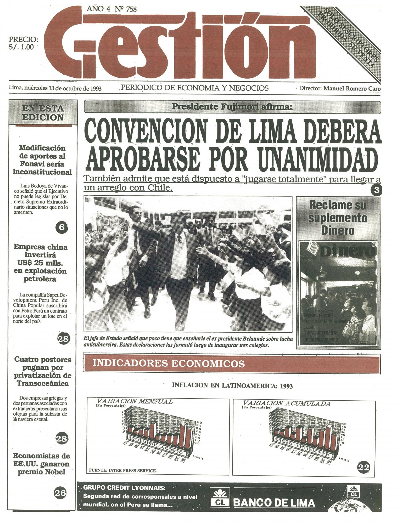 Presidente Fujimori afirma: CONVENCION DE LIMA DEBERA APROBARSE POR UNANIMIDAD
