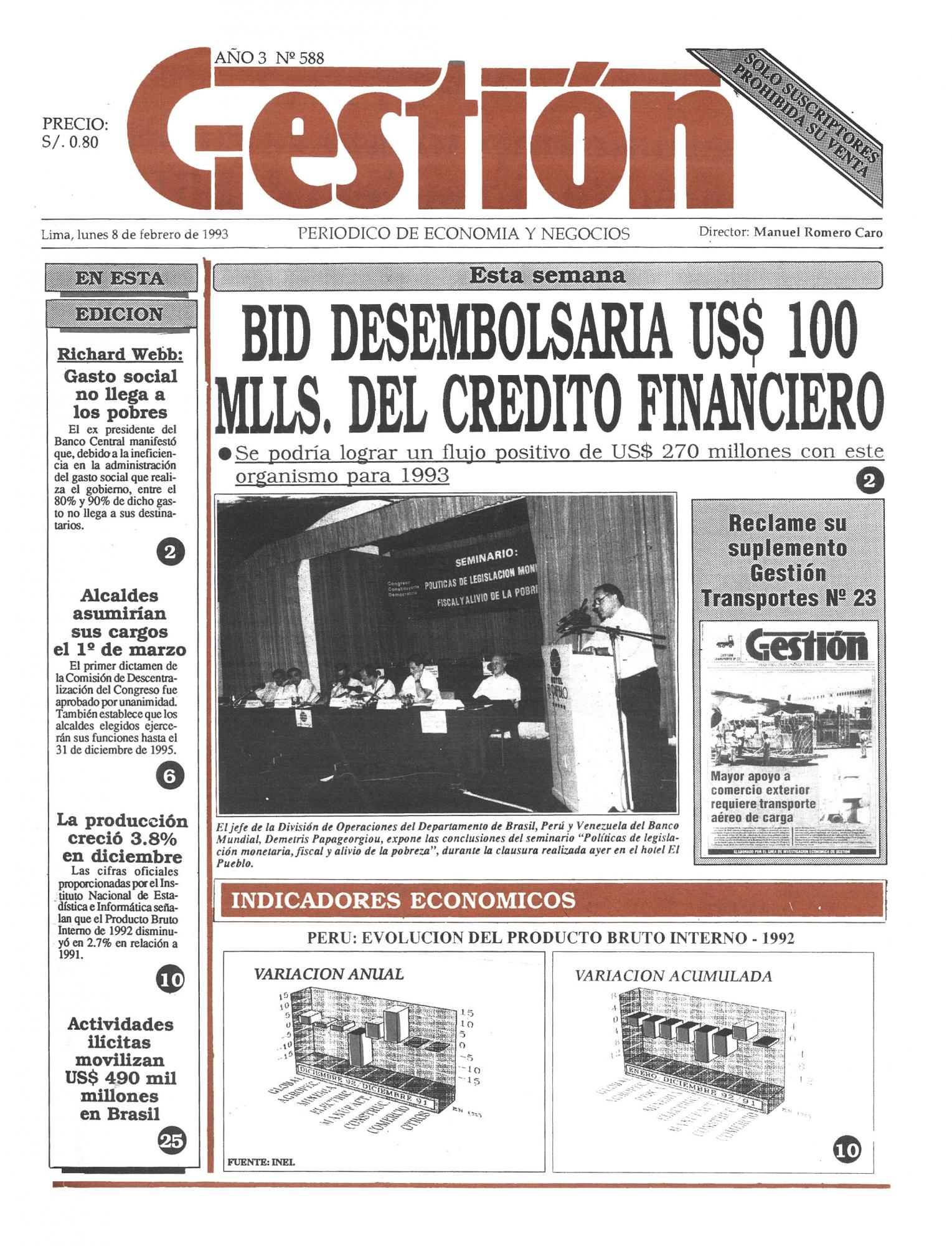 Se podría lograr un flujo positivo de US$ 270 millones con este organismo para 1993.