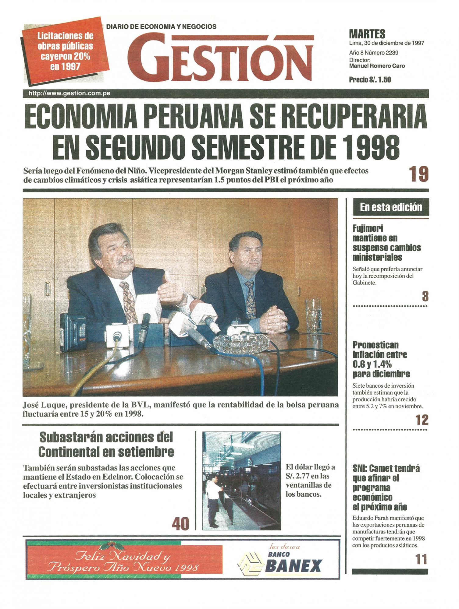 ECONOMÍA PERUANA SE RECUPERARÍA EN SEGUNDO SEMESTRE DE 1998