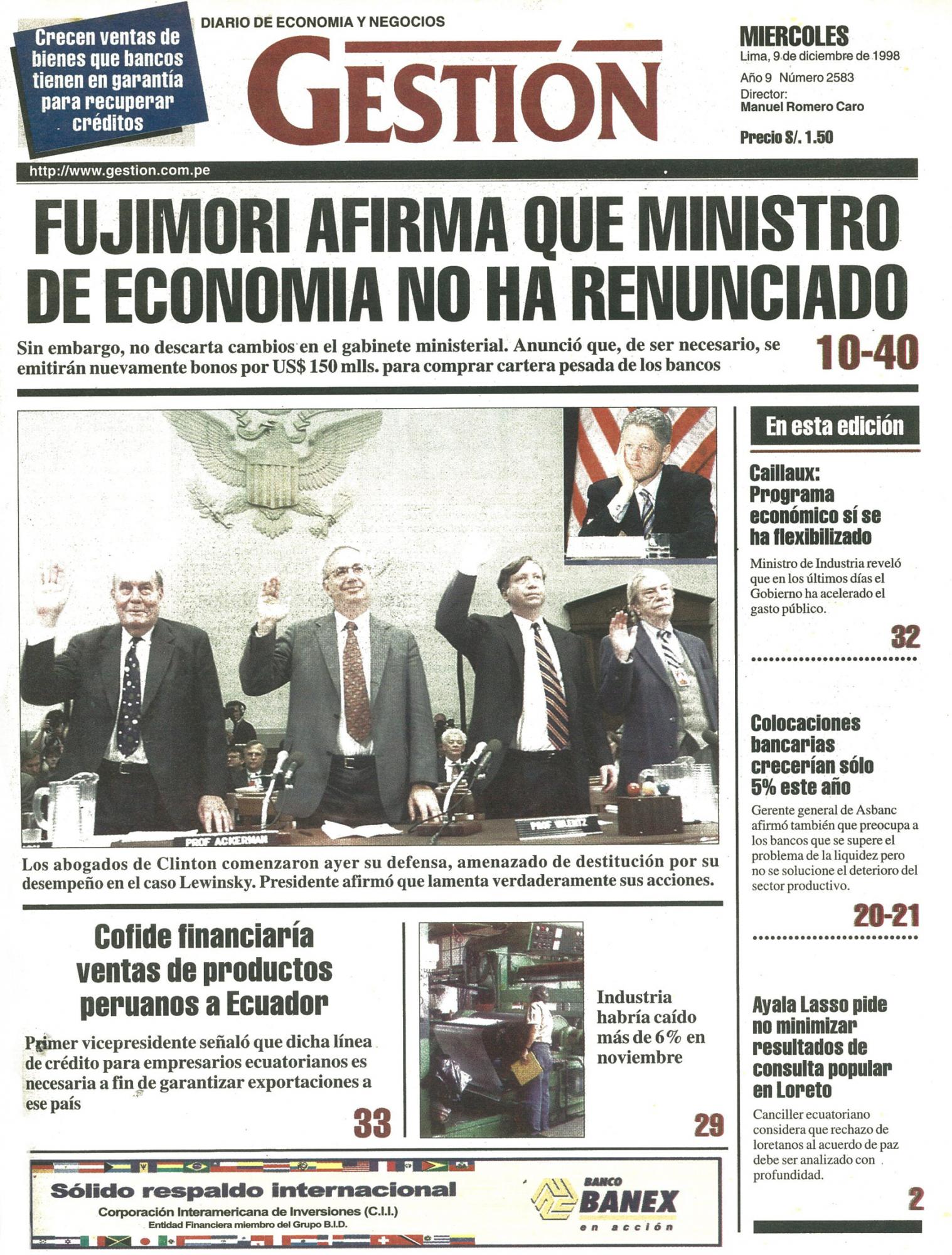 Sin embargo, no descarta cambios en el gabinete ministerial. Anunció que, de ser necesario, se emitirán nuevamente bonos por US$ 150 millones para comprar cartera pesada de los bancos.