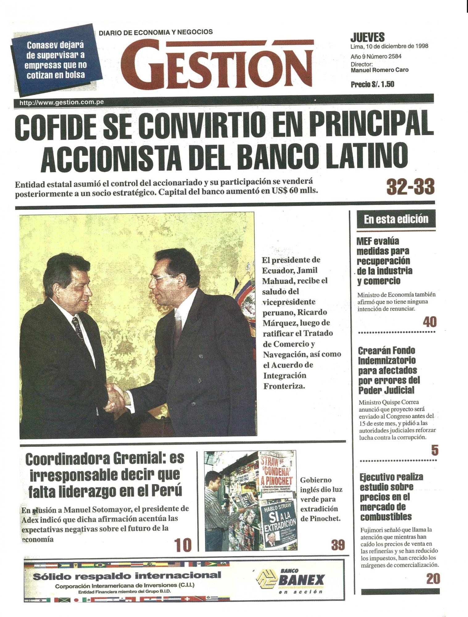 COFIDE SE CONVIRTIO EN PRINCIPAL ACCIONISTA DEL BANCO LATINO