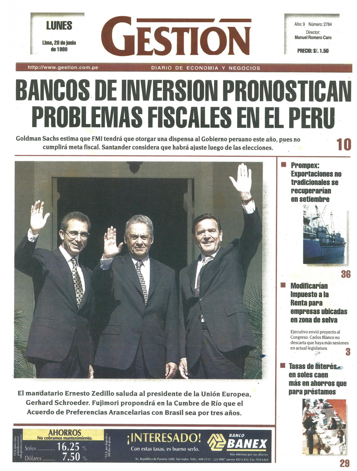 BANCOS DE INVERSION PRONOSTICAN PROBLEMAS FISCALES EN EL PERU