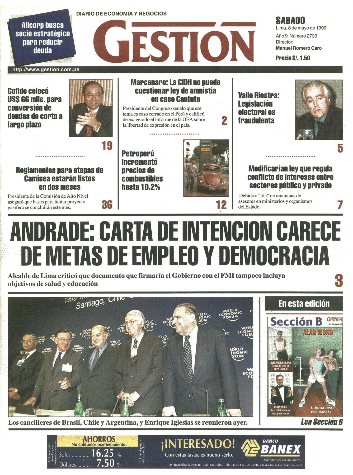 ANDRADE: CARTA DE INTENCION CARECE DE METAS DE EMPLEO Y DEMOCRACIA