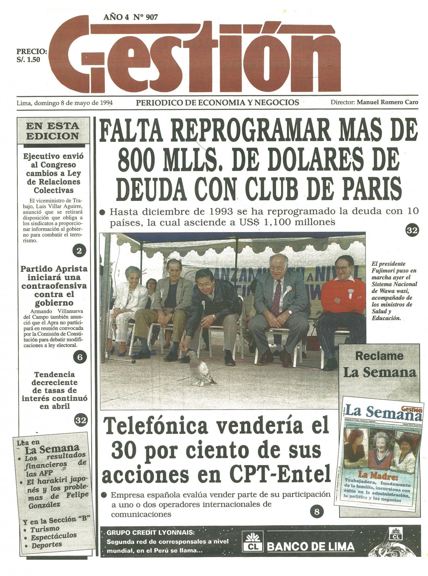 Hasta diciembre de 1993 se ha reprogramado la deuda con 10 países, la cual asciende a US$ 1,100 millones