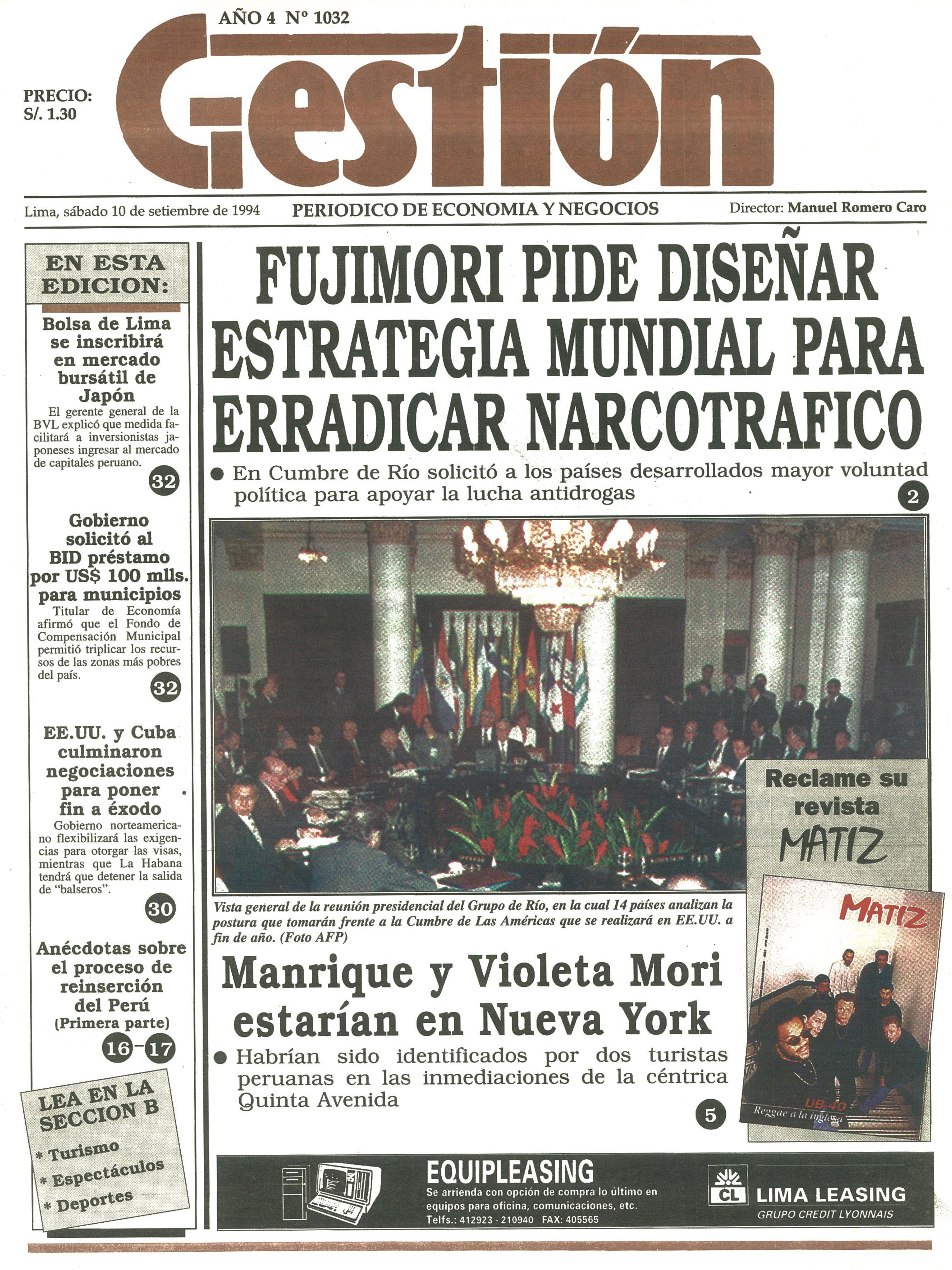 FUJIMORI PIDE DISEÑAR ESTRATEGIA MUNDIAL PARA ERRADICAR NARCOTRAFICO