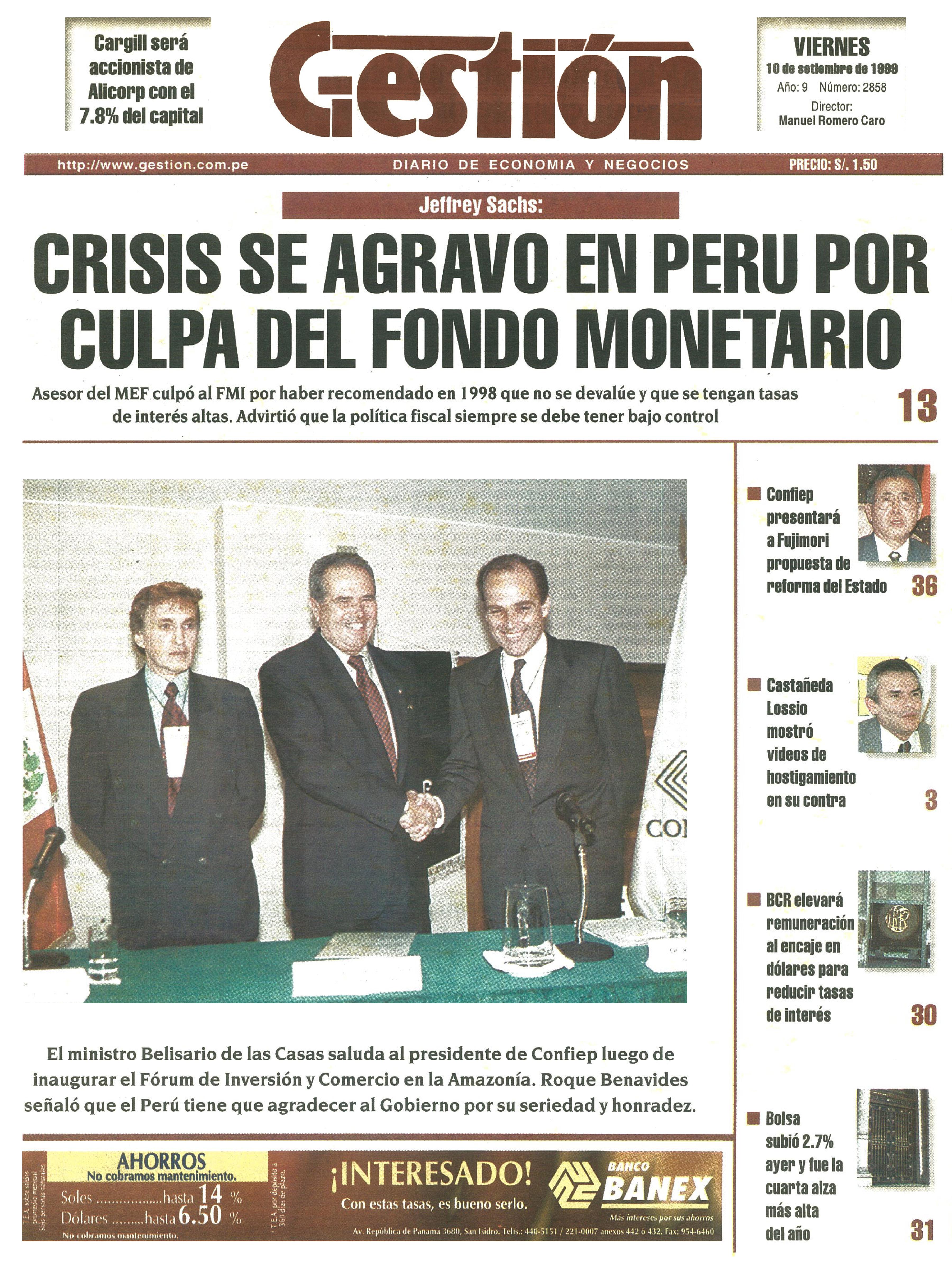 Asesor del MEF culpó al FMI por haber recomendado en 1998 que no se devalúe y que se tengan tasas de interés altas. Advirtió que la política fiscal siempre se debe tener bajo control.