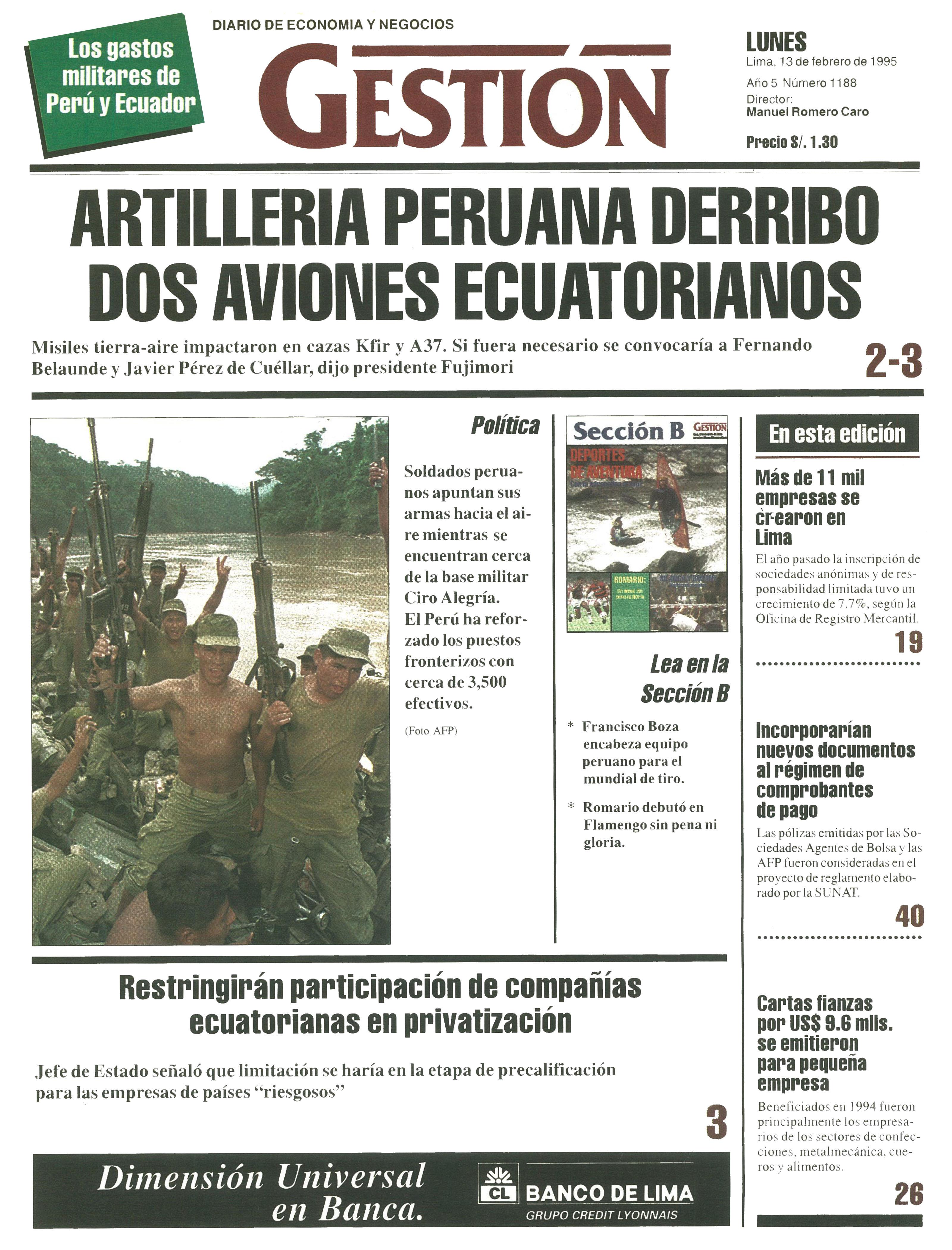 Misiles tierra-aire impactaron en cazas Kfir y A37. Si fuera necesario se convocaría a Fernando Belaúnde y Javier Pérez de Cuéllar, dijo presidente Fujimori.