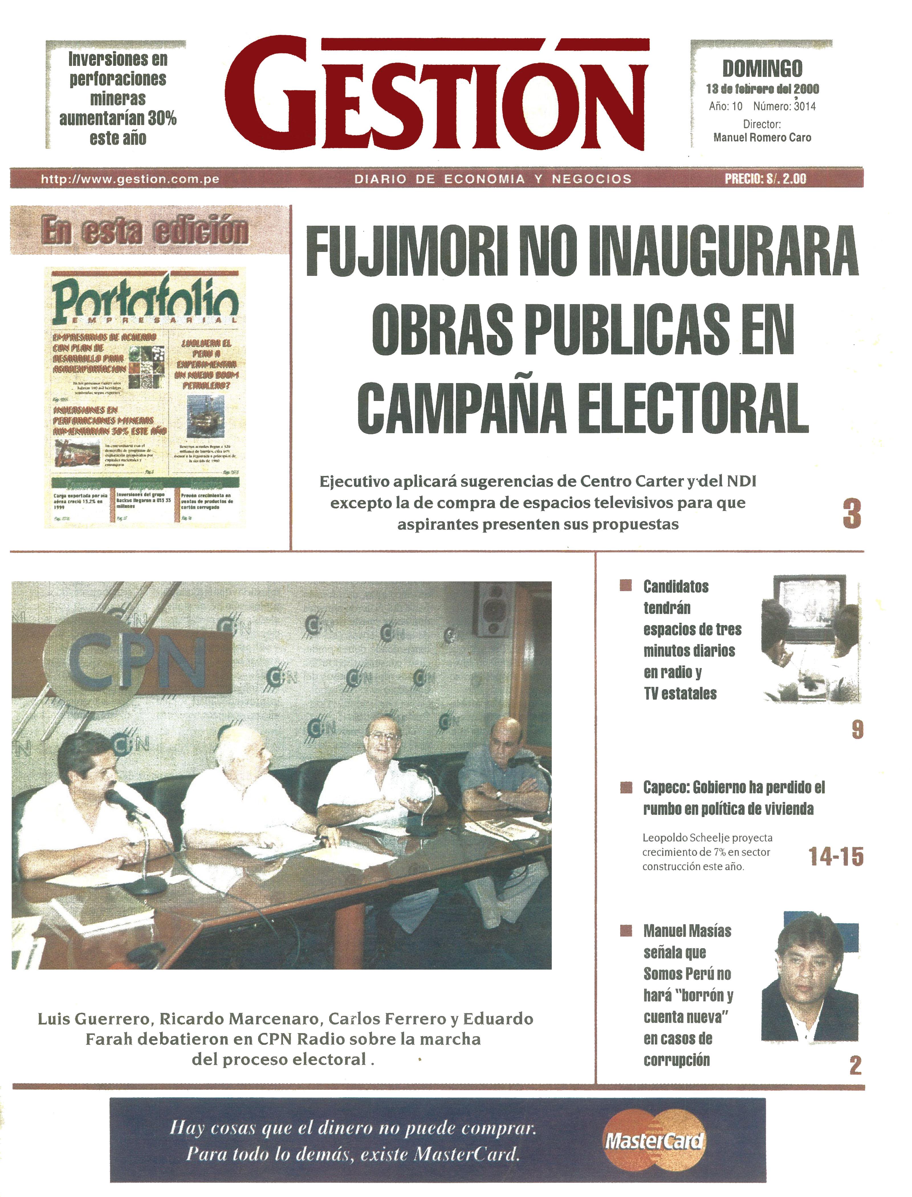 FUJIMORI NO INAUGURARA OBRAS PUBLICAS EN CAMPAÑA ELECTORAL