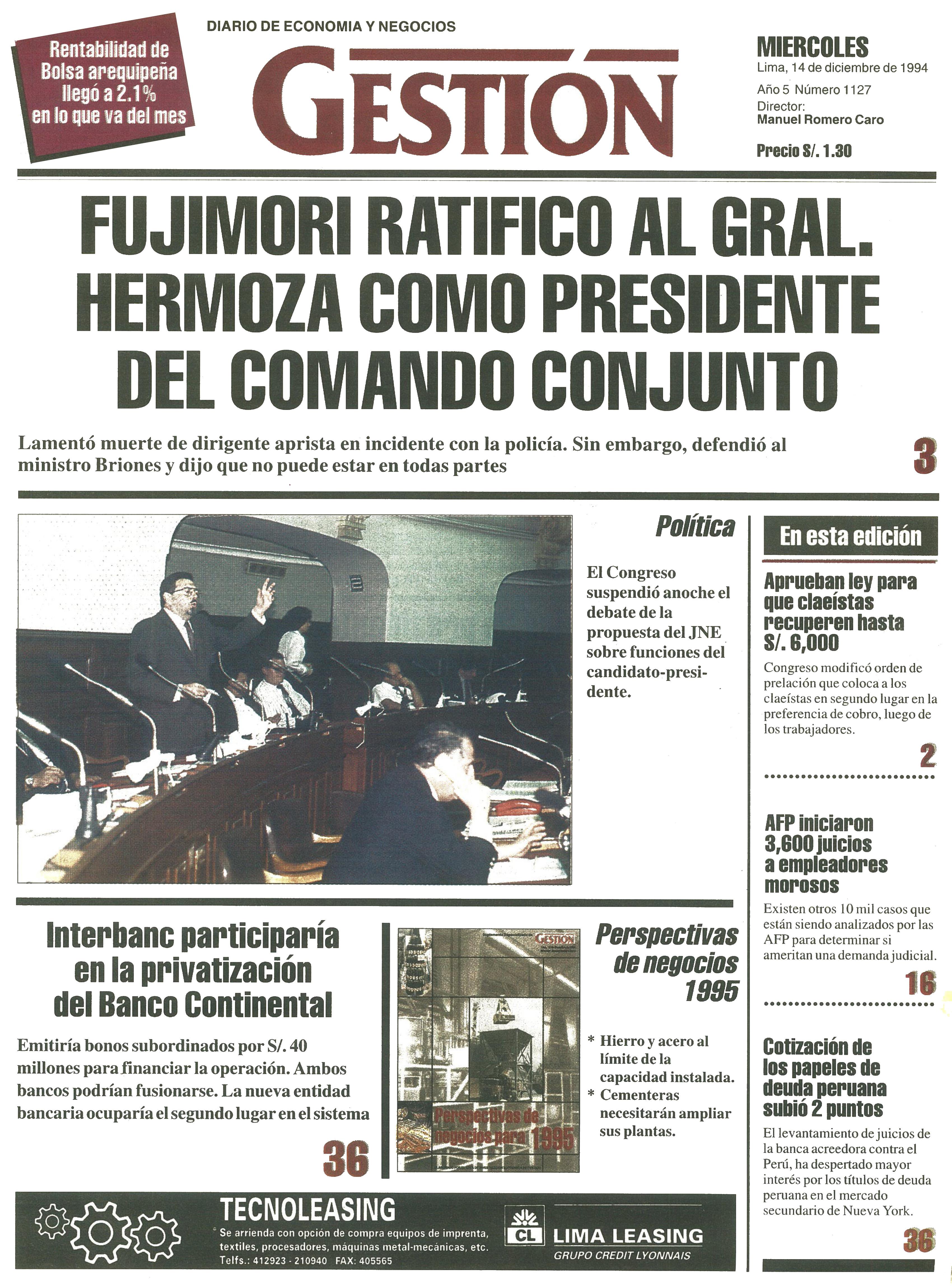 FUJIMORI RATIFICO AL GENERAL HERMOZA COMO PRESIDENTE DEL COMANDO CONJUNTO