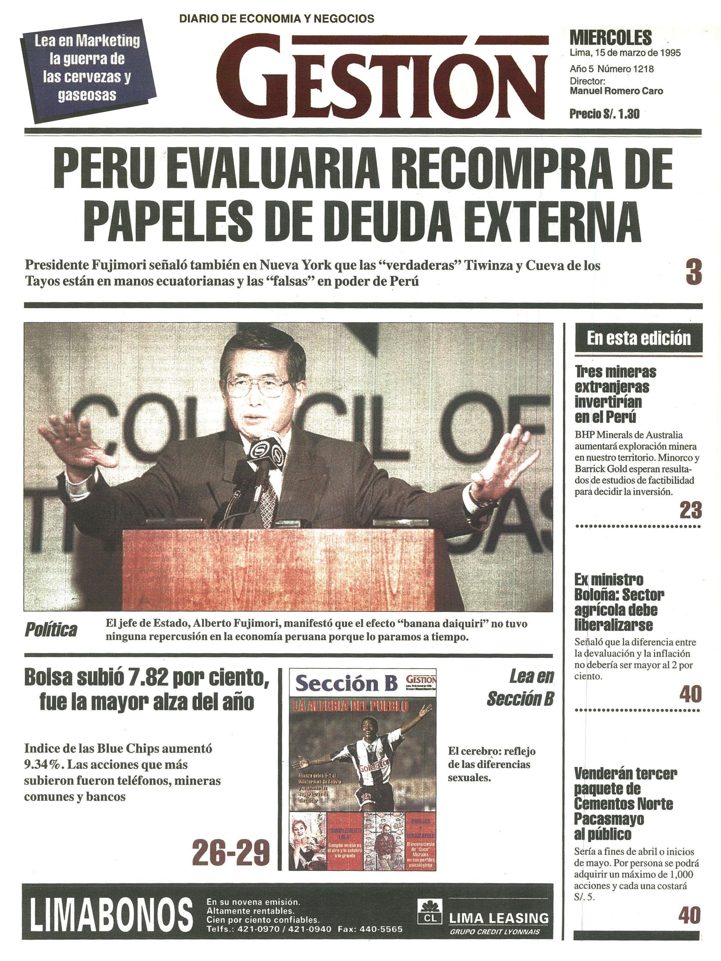 PERU EVALUARIA RECOMPRA DE PAPELES DE DEUDA EXTERNA