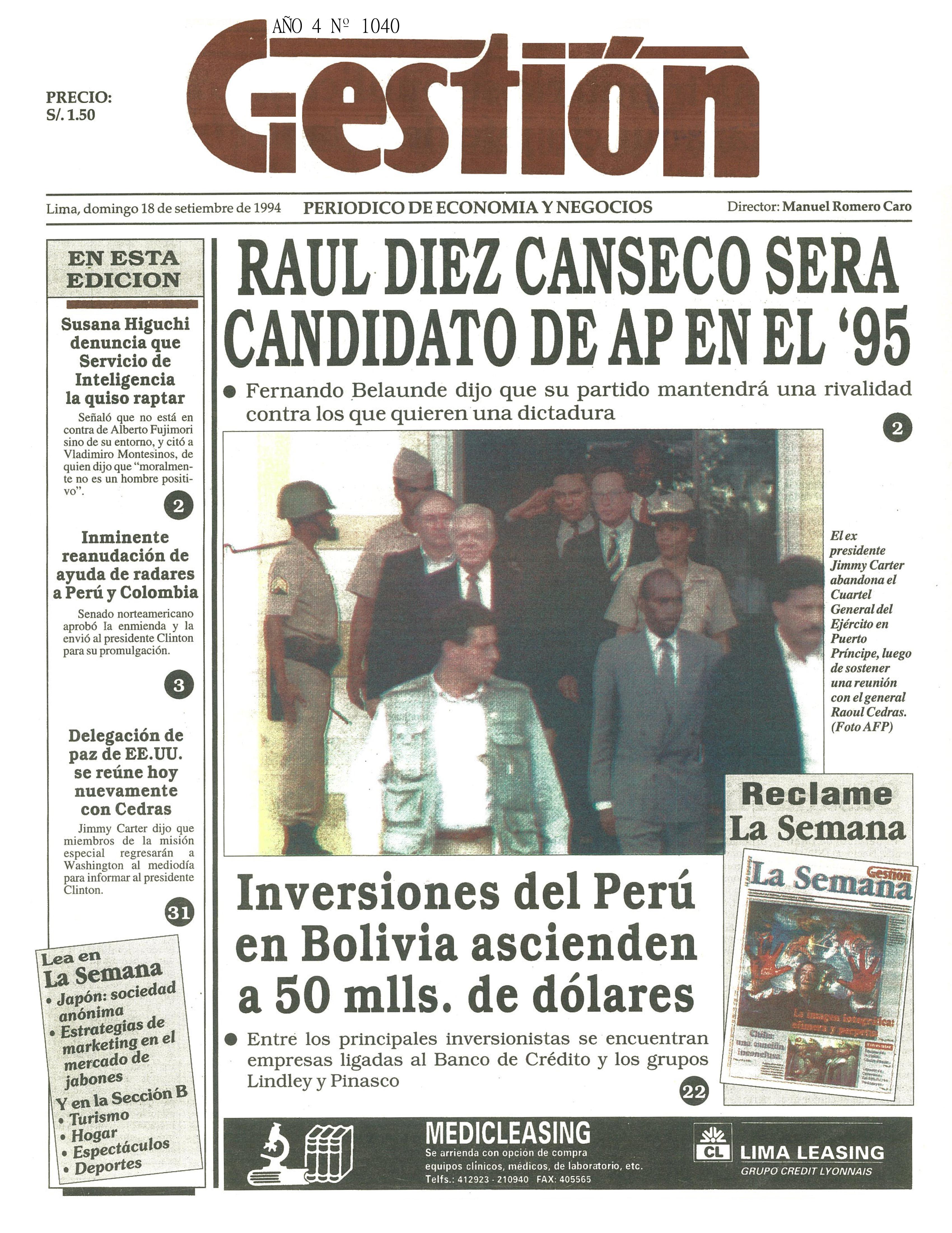RAUL DIEZ CANSECO SERA CANDIDATO DE AP EN EL ´95
