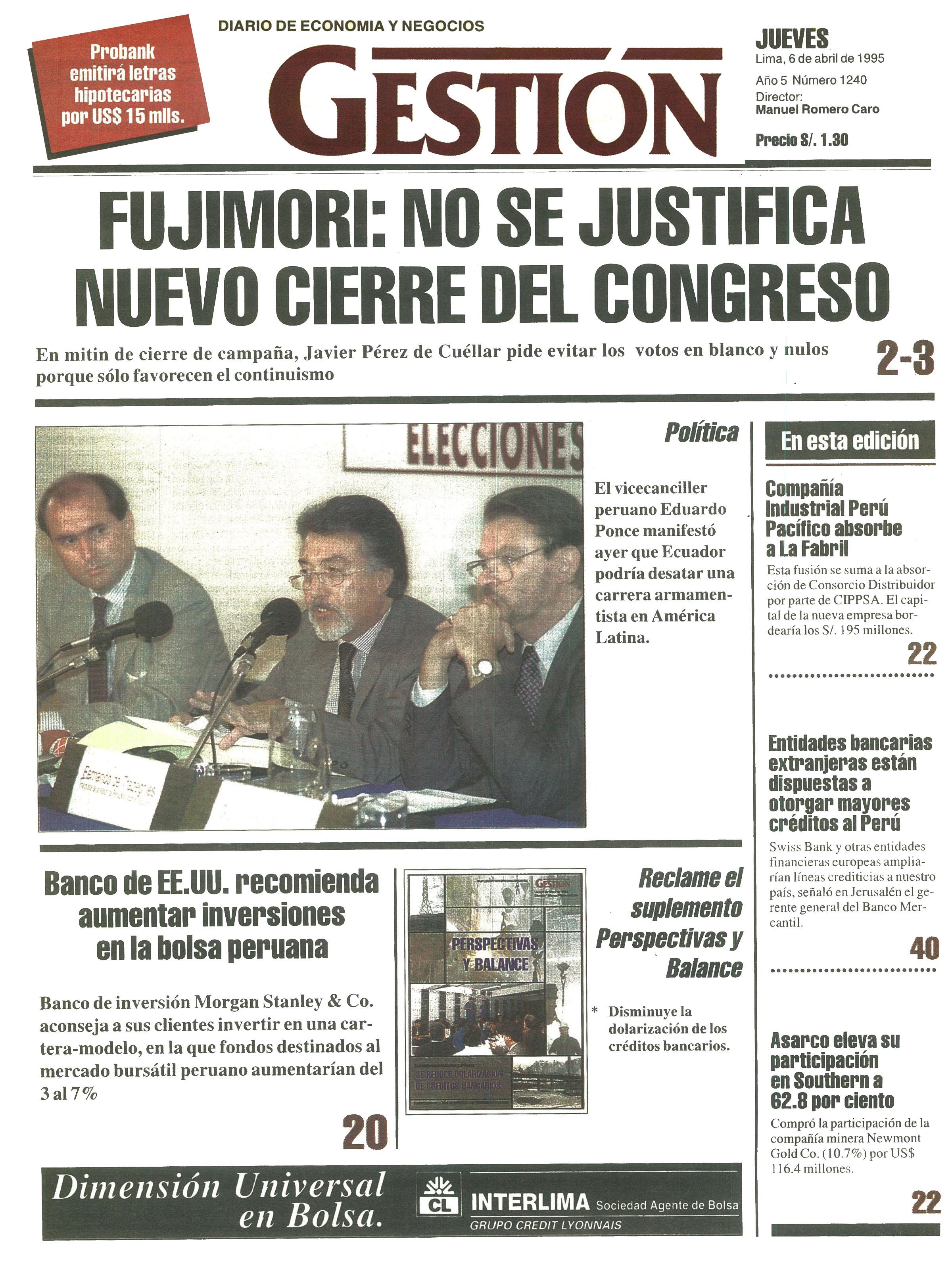 FUJIMORI: NO SE JUSTIFICA NUEVO CIERRE DEL CONGRESO