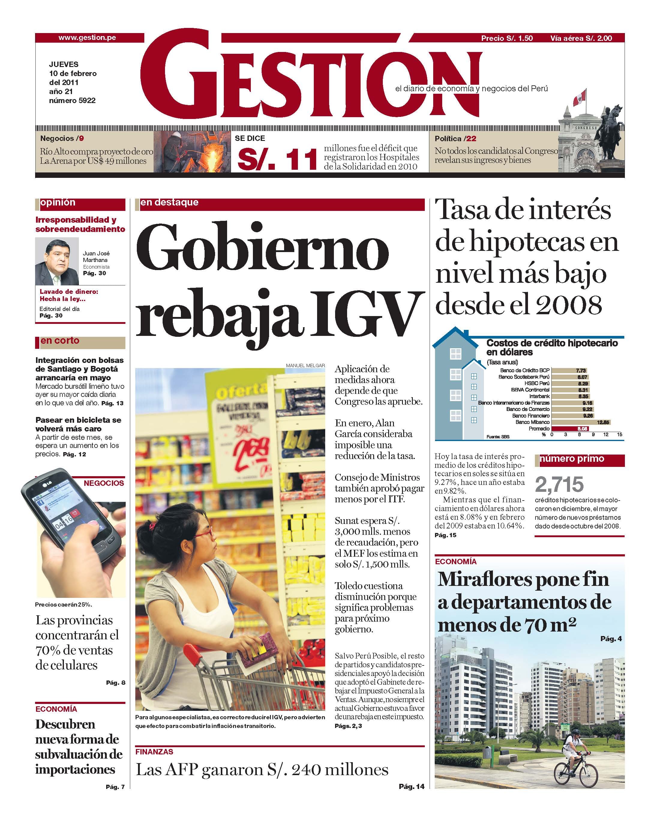 Aplicación de medidas ahora depende de que Congreso las apruebe. En enero, Alan García consideraba imposible una reducción de la tasa. Consejo de Ministros también aprobó pagar menos por el ITF. Sunat espera S/. 3,000 mlls. menos de recaudación, peroel MEF los estima en solo S/. 1,500 mlls. Toledo cuestiona disminución porque significa problemas para próximo gobierno. Salvo Perú Posible, el resto de partidos y candidatos presidenciales apoyó la decisión que adoptó el Gabinete de rebajar el Impuesto General a la Ventas. Aunque, no siempre el actual Gobierno estuvo a favor de una rebaja en este impuesto.