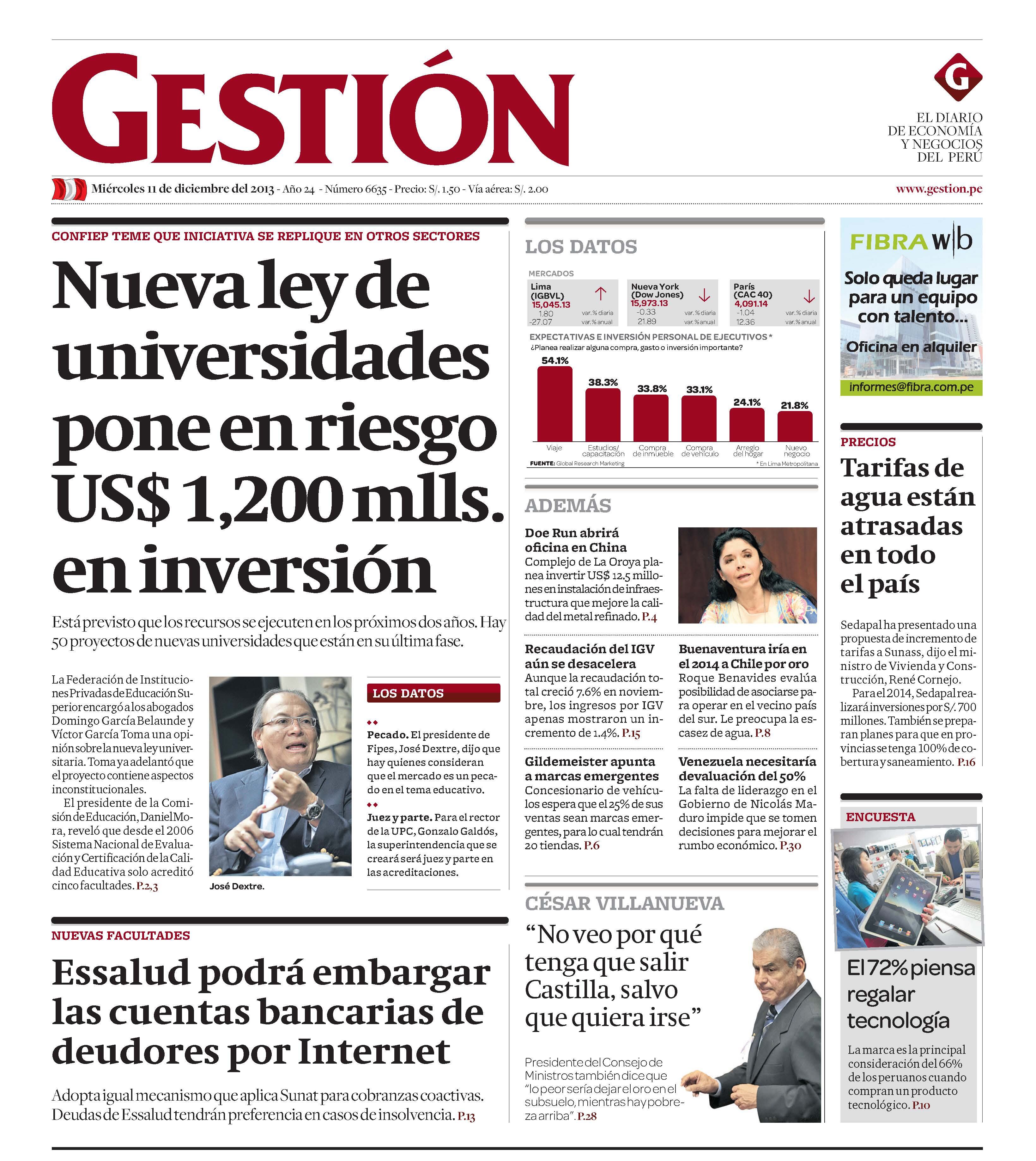 NUEVA LEY DE UNIVERSIDADES PONE EN RIESGO US$ 1,200 MLLS. EN INVERSIÓN