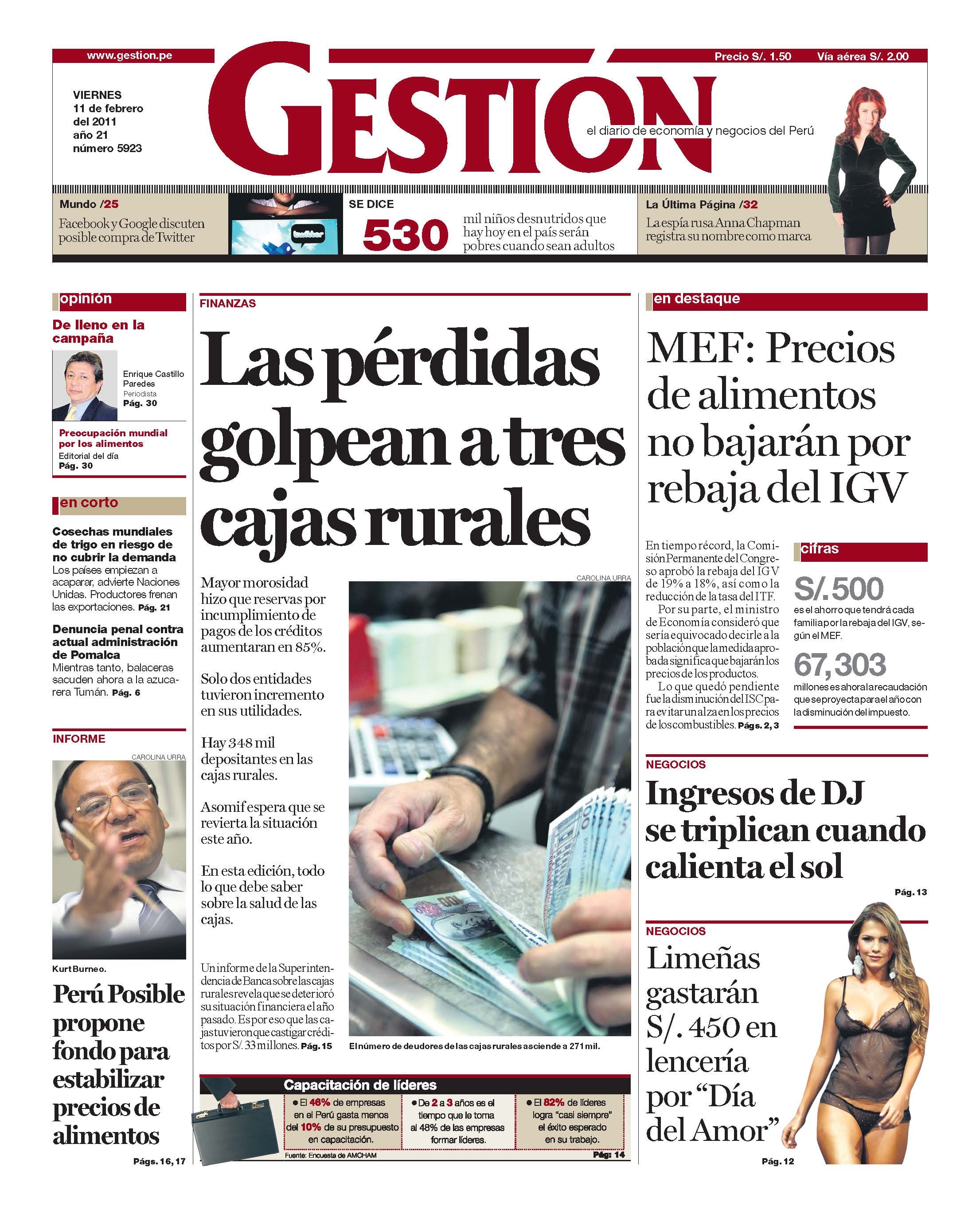 Mayor morosidad hizo que reservas por incumplimiento de pagos de los créditos aumentaran en 85%. Solo dos entidades tuvieron incremento en sus utilidades. Hay 348 mil depositantes en las cajas rurales. Asomif espera que se revierta la situación este año. En esta edición, todo lo que debe saber sobre la salud de las cajas. Un informe de la Superintendencia de Banca sobre las cajas rurales revela que se deterioró su situación financiera el año pasado. Es por eso que las cajas tuvieron que castigar créditos por S/. 33 millones.