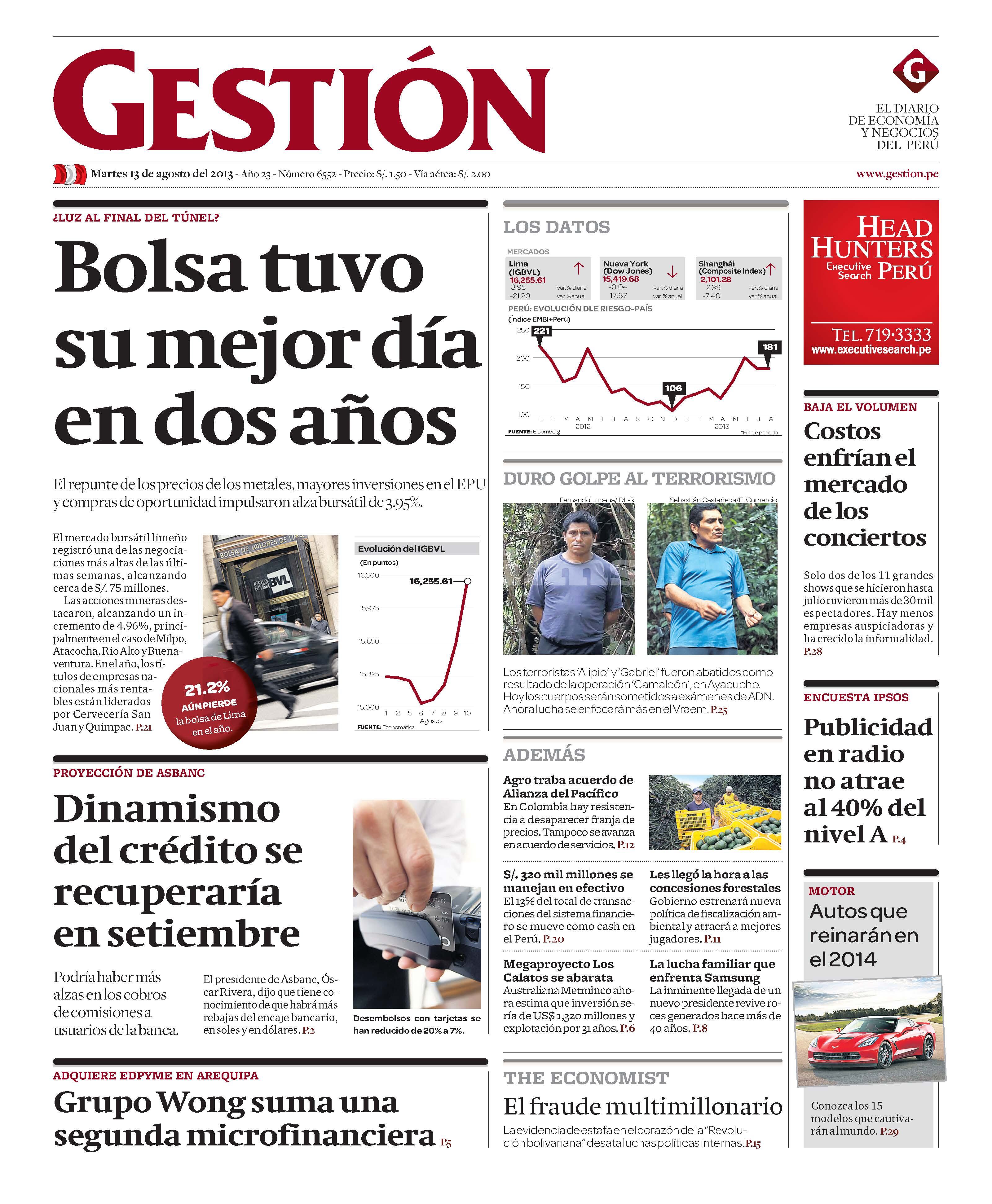 BOLSA TUVO SU MEJOR DÍA EN DOS AÑOS